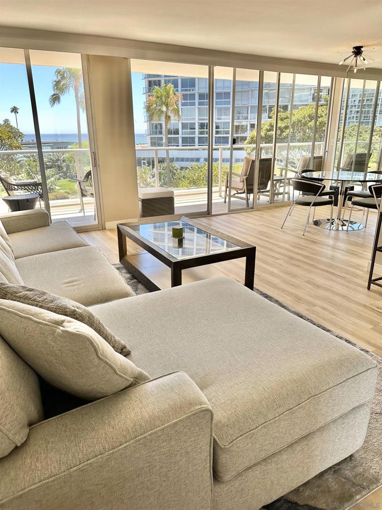 Enjoy the best of Coronado Beach from the La Princesa Tower at the Coronado Shores! Listen to the surf day and night! This beautifully remodeled 2 BR/2 BA 2nd floor unit boasts gorgeous ocean views from every room. There is a comfy upgraded King bed in primary bedroom, plush queen bed in guest bedroom along with triple bunk beds.. Updated bathrooms, kitchen granite countertops and automated blinds in living area provide shimmery daytime views with privacy at night; blackout curtains in both bedrooms. Windows open wide in every room to maximize ocean breezes and sounds of the surf below. Beachy, wood-look tile floors throughout, including your furnished balcony with chairs, table and ottomans. Includes a corner parking spot in the secure, underground garage, with additional guest parking throughout the gated complex. Coronado Shores offers lighted tennis courts, 4 pools/spas, gym and beach club. Booked July 2024. Available August 2024!