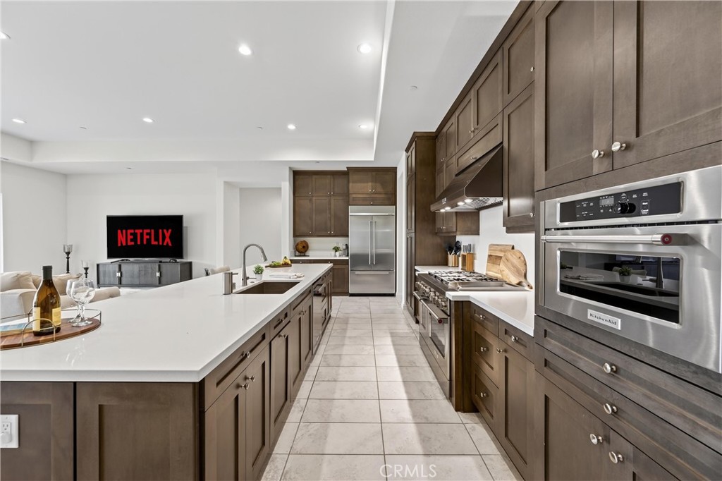 This property offers everything a large family could dream of — and more. From the moment you walk in, the sense of space is undeniable. The hallways are wide, the living areas are expansive and the ceilings soar at 12 feet throughout the entire home. Just off the entry, you’ll find the first family room — a spacious and versatile area perfect for welcoming guests or creating a dedicated lounge space. As you continue down the hallway, you’re welcomed into the heart of the home: the chef’s kitchen and the second, main living room. This living room features stunning accordion doors that span the entire length of the space, creating a seamless indoor–outdoor flow and flooding the room with natural light. The kitchen is truly a culinary dream, featuring a high-end built-in stainless steel French door refrigerator with a bottom freezer, double ovens, 6-burner cooktop, a built-in microwave and rich, real oak cabinetry — dark, timeless, soft-close, and extending all the way up to the ceiling for a striking luxury finish. A MASSIVE center island with a sink anchors the space, complemented by a dedicated coffee nook. Behind the kitchen sits an exceptionally large walk-in pantry, perfectly sized for a home of this scale. Just off the first family room is a home gym, complete with its own private bathroom — ideal for rinsing off right after a workout. This home offers five bedrooms: one bedroom has been converted into the gym, one is a standard-size bedroom with a full attached bath, two are mini–primary suites with their own walk-in closets and en-suite bathrooms, and the fifth is the massive primary suite. The primary suite is truly impressive, with a slider leading to the backyard and an enormous en-suite bathroom. Enjoy dual separate sink areas, a his closet plus an extremely large hers closet, a spacious soaking tub, and a generous walk-in shower — everything you could hope for in a luxury retreat. The second living room flows seamlessly into the dining area and a large flex room, offering endless layout possibilities. Outside, the property provides abundant yard space in the back and on both sides — perfect for parking vehicles and toys, adding a pool, BMX track, or even accommodating horses. Yes, this is horse property — a true blank canvas ready for your vision. Additional features include paid-off solar, a UV charger, and a spacious 1,000 sq. ft. three-car garage. This home is the definition of space, flexibility, and opportunity.