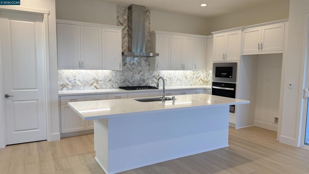 Brand new North East facing 5 bedroom home at Capri is ready for move-in! Home has been highly upgraded with incredible finishes and designer upgrades that include an abundance of beautiful white cabinetry with rich black stainless steel hardware, oversized sliders for additional natural light, Stunning counters, backsplashes and more. This exceptional luxury residence is situated with no rear neighbors for added privacy. Additionally, there is a 5th bedroom and full bath on the lower level- perfect for extended family or guests. Home also has a cook’s kitchen with large center Island, plenty of cabinets, built-in stainless appliances and large outdoor covered California Room with comfortable backyard for your enjoyment just steps from the lake. The upper level offers spacious bedrooms, laundry, shared bath, loft and sumptuous Primary suite with oversized shower, freestanding soaking tub, walk-in closet. SOLAR and SMART elements are INCLUDED at no charge. Rate Buy-down available. Don’t delay!