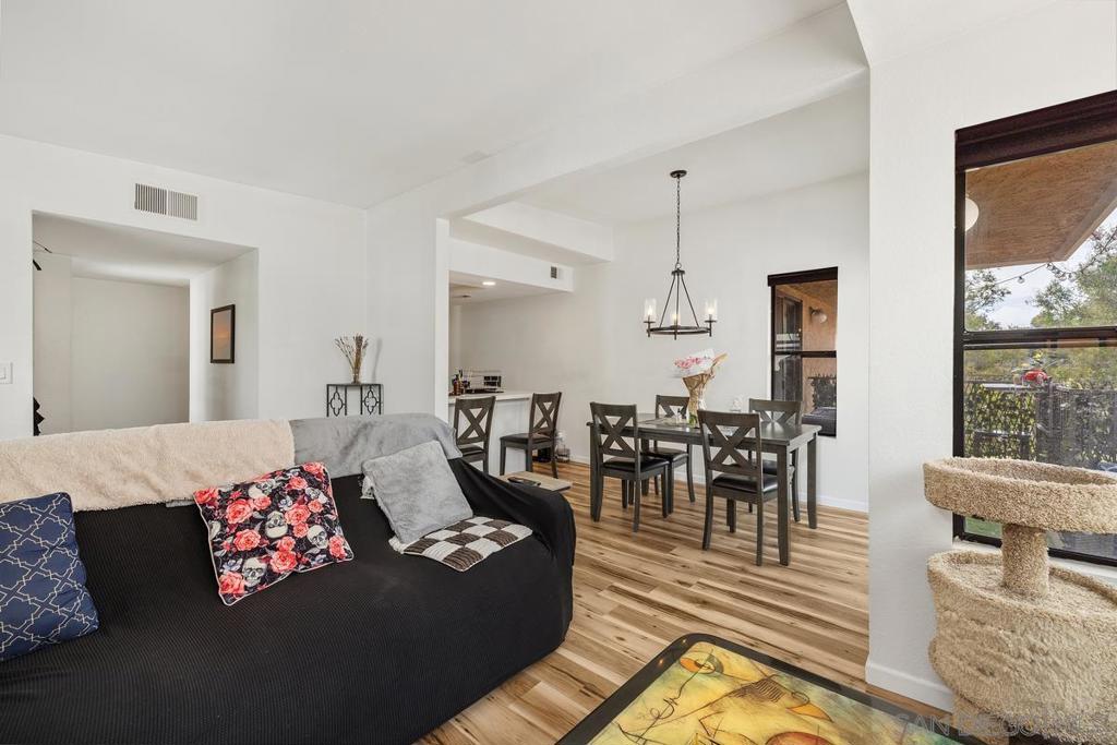 Beautiful Las Palmas Park Villas home now available. Top floor unit with large and spacious floor plan. Private with great functional layout, fully updated with all new upgrades and modern finishes throughout, large bedrooms and 2 full bathrooms. High ceilings create a spacious atmosphere. In suite laundry, forced heating and air, fireplace with a patio/balcony accessible from the primary and living. Updated new custom window blinds, ample natural light, 2 parking spots, one Garage spot with storage. Fiber internet available, Close to base, parks, shopping, this has an ASSUMABLE VA loan at 2.9% for qualifying Veterans. Definitely check it out !