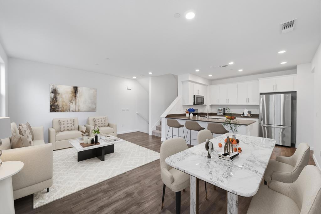 Welcome to this charming townhome located in the vibrant Berryessa area with low HOA! Experience contemporary living in this stylish townhome, expertly crafted by the renowned Pulte Homes. Finished in June 2018, this 1,667 sq ft 3 bed, 3 bath over 3 floors. Open plan living room, dining & kitchen. Kitchen has upgraded white slab cabinets, upgraded hardware & upgraded quartz counters & stainless steel appliances. Second floor has upgraded laminate flooring with LVT plank in all baths. laminate flooring in Master, carpet in the 2nd bedroom and hallway. large washer/dryer closet on 3rd floor. Master bed has a large walk-in & balcony, dual sinks in the master bath, and a walk-in shower. 2 car tandem with storage. LED lighting, A/C with fresh air fan, tankless water heater & more. Over $20,000 worth of builder upgrades. Conveniently located in between HW101, 680 & 880 & NEW BERRYESSA BART station ,with a Google shuttle stop right in front of the community. Shopping and dining are just minutes away with Costco, Hmart,99 Ranch, and Sprouts nearby. It’s also close to Stratford and Challenger schools, making it perfect for families. Don’t miss the opportunity to make this beautiful home yours!