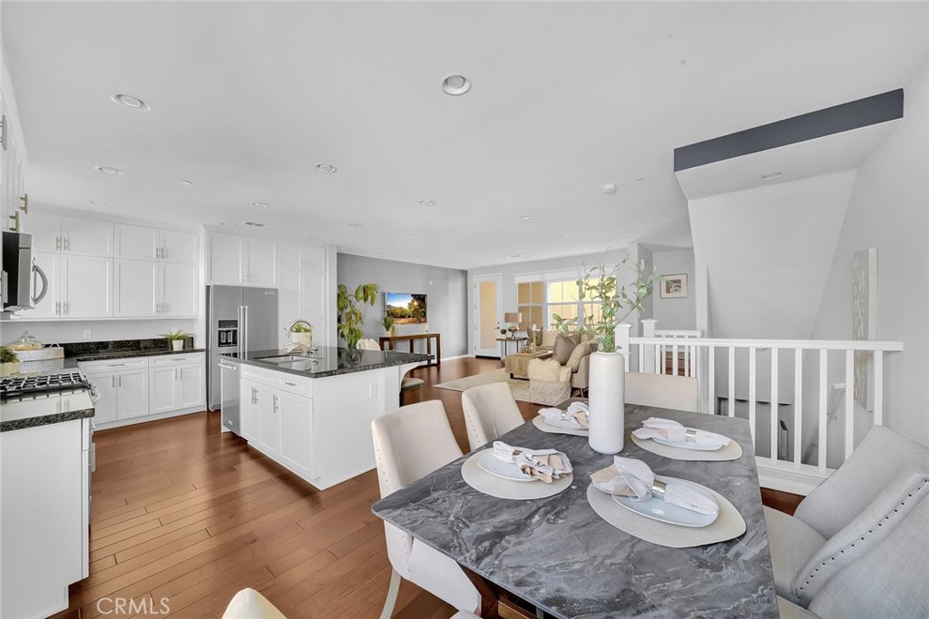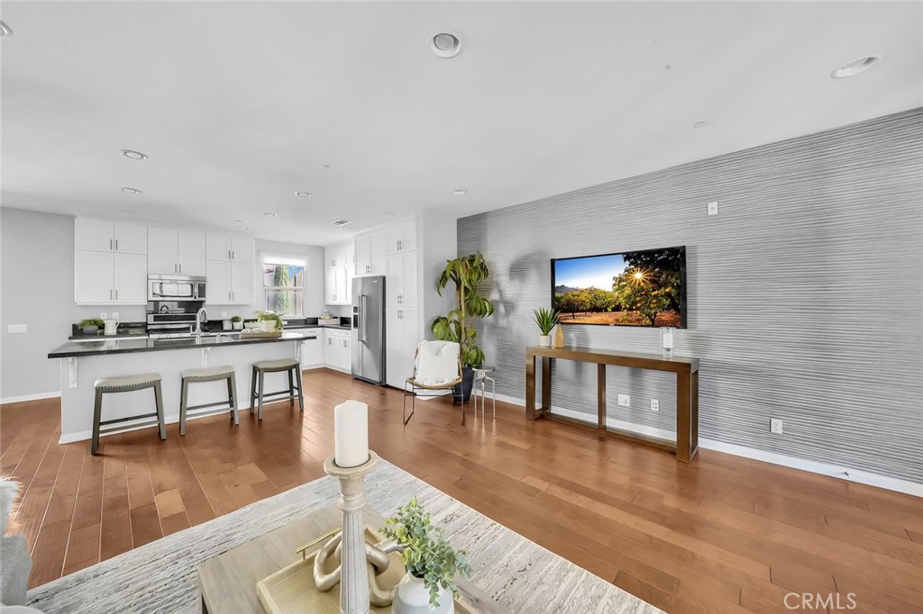 Introducing the Classic Cariz, a former model home from the latest collection of modern townhomes. This stylish residence features wood floors, recessed lighting, designer window coverings and shutters throughout. The second floor boasts a bright, open living space with a well-appointed kitchen and a spacious dining room perfect for entertaining. Step out onto the large balcony for a relaxing outdoor space. The chef’s kitchen is equipped with beautiful quartz countertops and backsplash, a breakfast bar, stainless steel appliances, upgraded cabinetry, and designer light fixtures. The master suite, with large windows and a walk-in closet, is both bright and inviting. The master bath includes neutral tile floors, quartz dual vanities, and a walk-in glass shower. Generously sized secondary bedrooms feature ceiling fans and share a bathroom with double sink vanities and a tub/shower combination. The home also offers a two-car tandem garage. Residents enjoy resort-like amenities including a pool, spa, clubhouse, picnic area, and playgrounds, all just steps away. Conveniently located near shopping, dining, entertainment, and toll roads, this community is served by award-winning Irvine schools, including Portola Springs Elementary, Jeffrey Trail Middle School, and Portola High School.