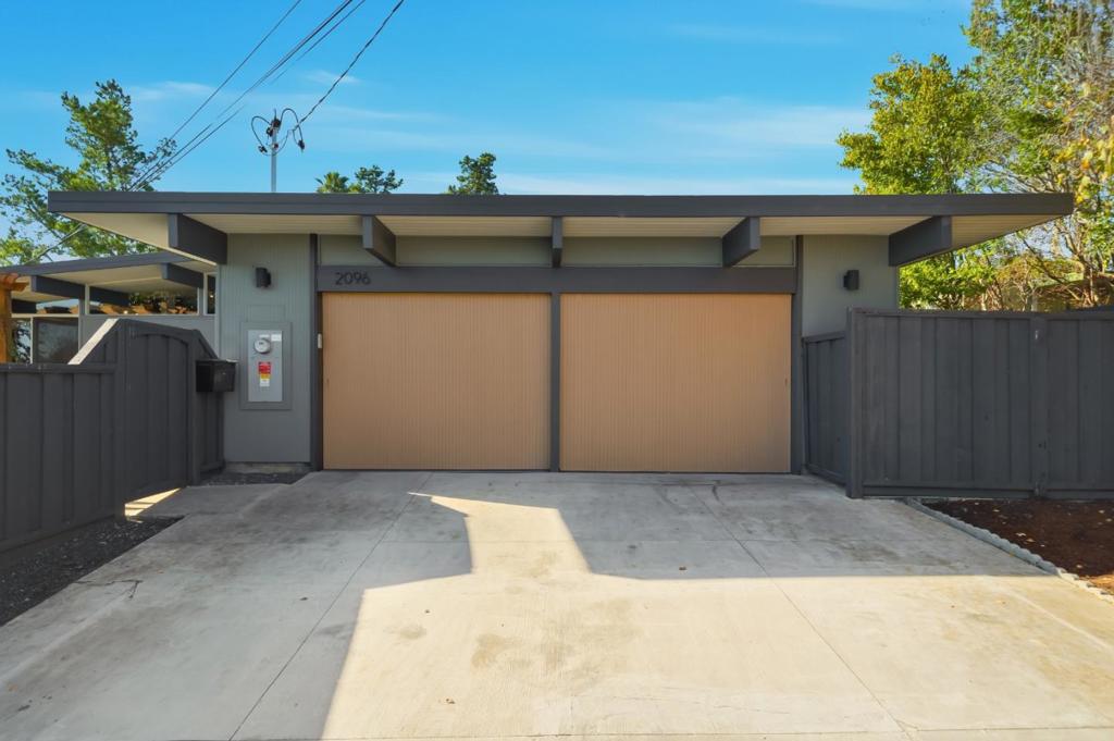 Beautiful remodeled Eichler w/mid-century architecture & modern updates & rare expansive flat yard. Classic Eichler elements: soaring wooden & beam ceilings, A formal entry to spacious liv.rm w/high ceilings, beams, a brick accent wall a wood-burn fireplace. The kitchen is a striking modern showpiece w/high-gloss fire-engine red & white cabinetry. Granite countertops,5 burner gas cooktop, sleek hood, built-in oven, trash compactor. Oversized commercial-style refrigerator is flanked by pantry storage.The eat-in dining area connects to the front yard. Off the kitchen is a separate family or private bdrm. w/flexible living space. A full modern bath w/stall shower. Perfect for media or extended living. The bedrm wing includes 4-bedrms; 1 bdrm is used as a (home office) w/skylight. The primary suite w/spacious closet & a sliding door that opens to the yard. Remodeled bath w/a shower & tile floors. The newly renovated contemporary hallway bath. w/a suspended floating vanity, dramatic dark tile floors & green tiled accent wall. W&D located in the hallway. Front yard w/custom pergola, & lush landscaping. Bonus hobby studio approx.215 sq. ft. Nest thermostat, newer boiler system & sewer lateral, 22 owned solar panels. Showcased in Eichler Mag. & The Almanac for weekend brunch”Table for 6″