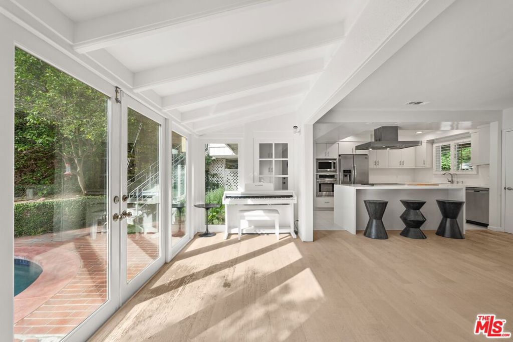 This BHPO retreat blends timeless charm with a layout designed for effortless California living. Inside, rich white oak floors, built-in surround sound, and a chef’s kitchen with stainless steel appliances and wine cooler create an inviting flow. A fireplace anchors the living room, with glass doors opening to a resort-style backyardperfect for al fresco dining and entertaining. For special occasions, the pool has even been temporarily covered to serve as a dance floor. Surrounded by greenery and fruit trees, the outdoor space also features a heated pool, and a viewing deck with peekaboo ocean views on clear days. A separate guest house with en suite bath offers versatility as a fourth bedroom, studio, or office. Move-in ready with abundant natural light and classic details, this home also offers plenty of opportunity to personalize or enhance over time. Set in the coveted 90210 ZIP code, it’s a great blend of peaceful seclusion and easy access to the best parts of both the city and valley.