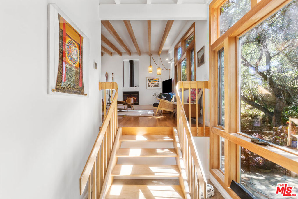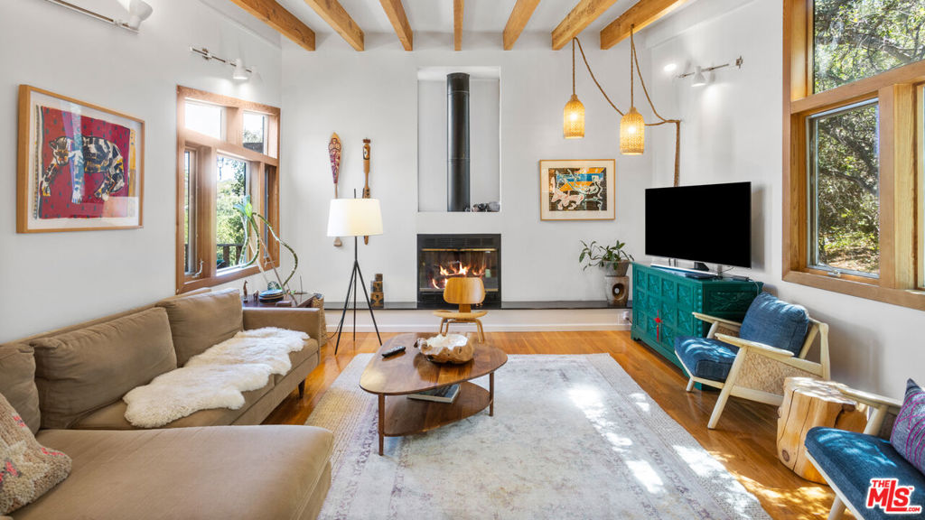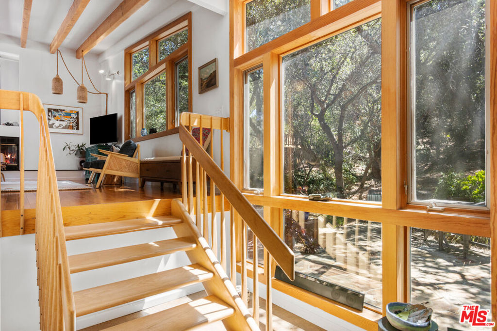 Private , view filled 4 bedroom wood and glass home for lease in Topanga. Escape to tranquility down a long private drive to this beautiful, well maintained home nestled in the heart of Topanga’s P. O. Tract. Just steps away from Topanga State Park, this serene and private 4-bedroom, 3-bathroom house is a nature lover’s dream. Home features two en-suite bedrooms with adjoining sitting rooms or nurseries and two additional bedrooms. Living space has an expansive layout with wood floors, beamed ceilings, large windows and a wood-burning fireplace. Abundant windows offer views of mountains, oak trees and a seasonal stream. Kitchen is open and inviting, with an attached outdoor deck, perfect for dining and entertaining. This beautiful home combines rustic charm with modern amenities, offering a perfect blend of comfort and style. The abundant natural light and scenic views create a serene environment, making it a perfect place to call home. Lots of space for outdoor living with custom rock patios featuring built-in benches under majestic oak trees with room to lay back in a hammock or dine. Close proximity to hiking and biking trails in nearby Topanga State Park. This home offers a perfect blend of rustic charm and modern comfort, with central heat and air, a full laundry room and abundant closets. Ideal for those seeking a peaceful, nature-immersed lifestyle. Don’t miss out on this rare leasing opportunity in beautiful Topanga!