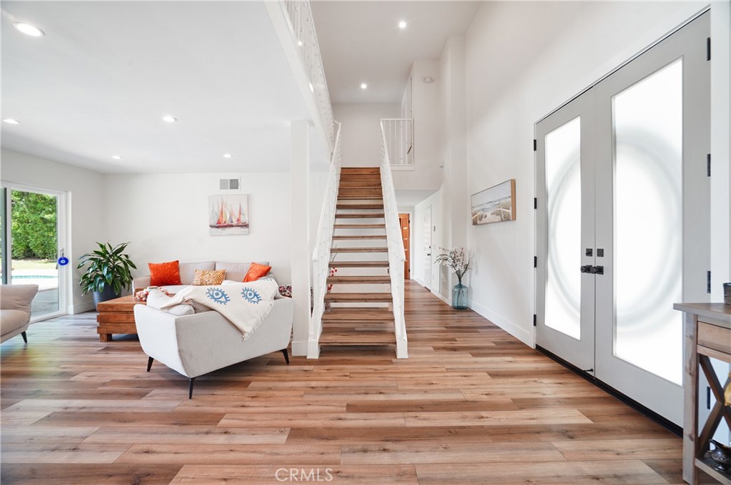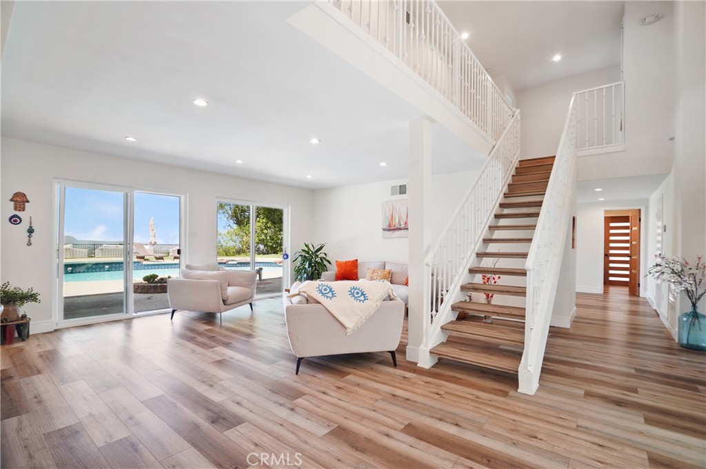 Unobstructed panoramic views, a sparkling pool and spa, and privacy await you at 21781 Planewood Drive, where modern elegance meets ultimate comfort in this fully remodeled two-story home, South of the Boulevard in Woodland Hills. Boasting ±2,563 square feet of thoughtfully designed living space, this gorgeous residence features 4 spacious bedrooms, 2.5 luxurious bathrooms, and a flexible floor plan suitable for a variety of needs. As you enter, you’ll be captivated by the high ceilings and abundant natural light that enhance the open and airy ambiance. The gourmet kitchen is a chef’s dream, equipped with top-of-the-line stainless steel appliances, ample cabinetry, and a large island that’s perfect for meal prep and casual dining. The generous living and dining areas flow seamlessly, making it ideal for both intimate gatherings and entertaining larger groups. Retreat to the primary bedroom suite, a sanctuary of relaxation, with a private balcony with breathtaking valley views, perfect for enjoying morning coffee or evening sunsets, plus an en-suite bath, featuring dual sinks and a beautifully remodeled walk-in shower. The additional bedrooms are comfortably sized and offer stunning panoramic views from nearly every room. Step outside from any of the sliding glass doors downstairs into your private backyard oasis; an entertainer’s paradise with a sparkling pool and spa, an expansive deck, and beautiful landscaping, perfect for enjoying sunny California days, outdoor dining, and leisure activities. Luxury meets practicality with an attached 3-car garage, providing ample storage and laundry area equipped with a washer and dryer. Situated on a peaceful cul-de-sac, this home offers tranquility and privacy while being just moments away from local amenities, shops, and entertainment in Warner Center, Calabasas, and Topanga. Experience unparalleled living in this exceptional Woodland Hills home, where every detail has been meticulously crafted for a lifestyle of luxury, comfort, and enjoyment.
