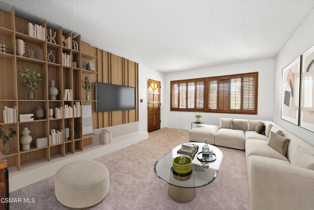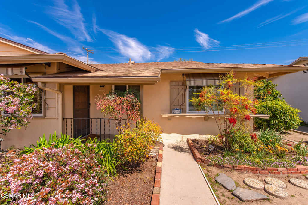 Look closely, technically, this home is a 3 bedroom but this 1,930 sq.ft home has rooms that offer so many options! Each of the three bedrooms offers unique possibilities. The first bedroom is oversized and features French doors with glass insets on one end that open to the family room and a separate hall entry on the other–perfect as a dual-purpose room for a home office and guest space or even as two separate bedrooms. The second bedroom is also generously sized and offers great flexibility–it can serve as a private living suite for an elderly parent, a playroom, or a bedroom with added lounge or nursery space. The primary bedroom includes charming shutters and an en suite bathroom with a tiled shower stall.The Living room greets you upon entering the home with built-in wooden bookcase and cabinets with darling window shutters which create such a welcoming vibe. The kitchen is functional with a walk-in pantry, bar seating, electric cooktop, and oven range–perfect for cooking and entertaining. The adjacent dining area flows seamlessly into the family room and living room, creating an open-concept layout ideal for gatherings. Warm, natural wood tongue-and-groove paneling and high ceiling create a cozy cabin inspired feel with a modern edge to this family room with wood burning fireplace. While the large windows and skylight bring in the light to create a bright open room.Step outside to your backyard oasis, complete with lemon, lime, avocado, and orange trees, a spacious garden area, and a lattice-covered patio–perfect for enjoying Camarillo’s beautiful cool weather.This home has been lovingly maintained and thoughtfully updated. Within the last five years, the roof, furnace, sewer line, pipes, and water heater have all been replaced. Dual-pane windows throughout enhance comfort and energy efficiency. Fresh interior paint and newer carpet complete the picture.Located in a desirable Camarillo neighborhood, this home blends charm and function. Don’t miss this wonderful opportunity!