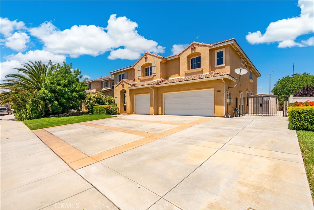 Grand 5-Bedroom Home with Loft, Office, Pool & Spa – 4,400 Sq Ft of Luxury Living with Prepaid Solar! Welcome to your dream home that combines elegance, functionality, and resort-style living. Featuring 5 spacious bedrooms, 4 full bathrooms, a dedicated office, and an oversized loft, this stunning two-story property offers the ideal layout for families, entertainers, or anyone craving space and comfort. Step through the front door and immediately feel the grandeur with soaring high ceilings that continue throughout both levels of the home. The formal living room is a showstopper with dramatic two-story ceilings and abundant natural light, while the formal dining room offers the perfect setting for holiday gatherings or dinner parties. The heart of the home is the gourmet kitchen, beautifully designed with granite countertops, an oversized center island, walk-in pantry, double oven and incredible storage. It opens seamlessly into the family room, creating a warm and connected living space perfect for entertaining or everyday life. A full bedroom and bathroom downstairs make an ideal guest suite or in-law quarters, offering privacy and convenience. Upstairs, you’ll find a huge open loft, perfect for a media room or game area. The luxurious primary suite is a true retreat, featuring a double-door entry, a cozy fireplace, and a large walk-in closet with custom built-ins. An attached bonus room adds even more flexibility—perfect for a private gym, nursery, or home sanctuary. Upstairs also includes a secondary bedroom with a private en-suite, a spacious hall bathroom with dual sinks, and an exceptionally large fifth bedroom, nearly apartment-sized, ideal for teens or extended family. Step outside into your private backyard paradise, where you’ll find a sparkling in-ground pool and spa with etched dolphin designs, covered patio and blockwall fencing. Additional upgrades include fresh new carpet and interior paint, elegant marble flooring, and prepaid solar power.