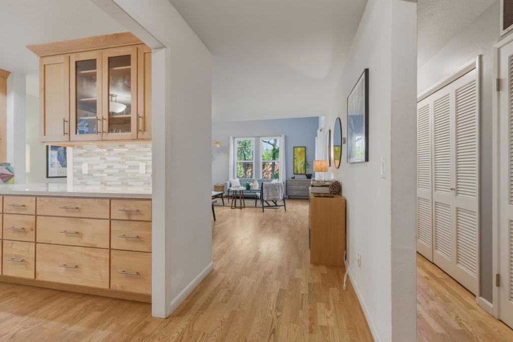 With three bedrooms, you’ll have the freedom to design your own home office(s). The designer kitchen and bathrooms offer upscale cabinetry, appliances, lighting, and double vanities. This inviting floor plan is bathed in natural light, with dramatic vaulted ceilings and tranquil treetop views. Significant improvements include a newly rebuilt roof, new siding, new fencing, new landscaping, and hardscaping in a garden backyard with 11 mature trees. Interior improvements include energy-efficient window replacements, bathroom remodeling, California Closets, wood floor resurfacing, and elegant accent walls throughout. Situated in the desirable Los Altos High School area, this home is just a short walk to the new Aquatic Center and several parks popular with families and dog owners. Commuters will love the easy access to Caltrain, work shuttles, and Central Expressway. Some of the best dining and entertainment in the Bay Area are only minutes away in downtown Mountain View and Palo Alto.