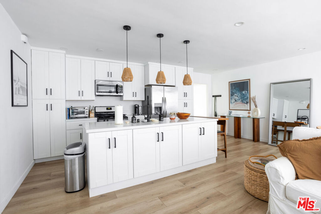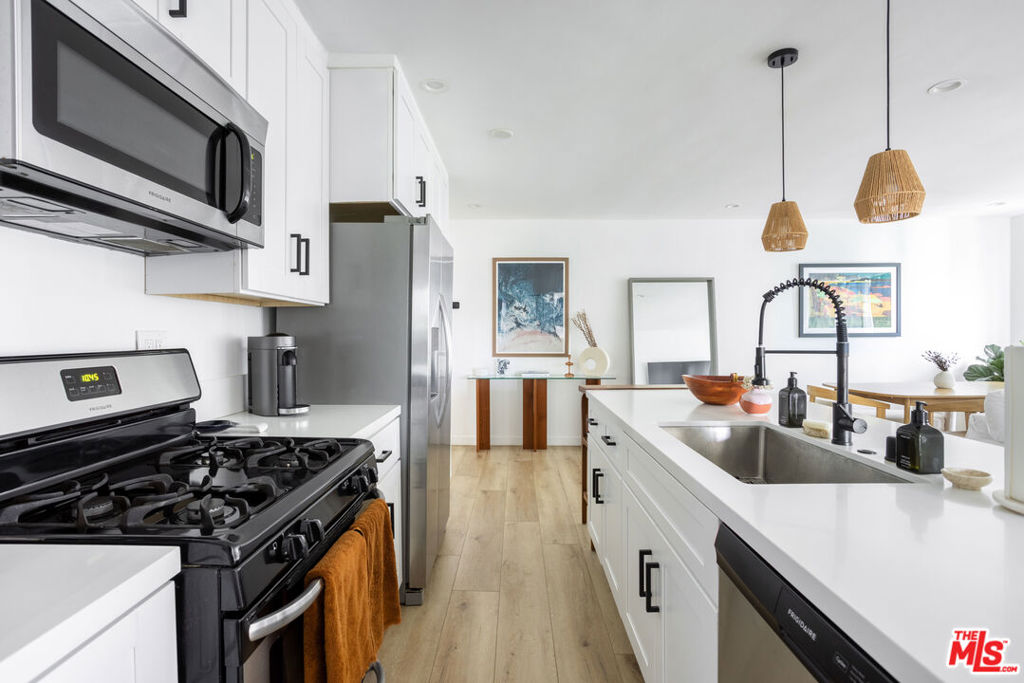 Welcome to 2241 Virginia Ave #11, a top-floor two-bedroom, two-bath condo in a prime Santa Monica location. The unit features brand-new windows, a fully remodeled kitchen with modern cabinetry, quartz countertops, and stainless-steel appliances. The open floor plan brings in plenty of natural light and creates a layout that works well for both everyday living and entertaining. Right outside the unit, you’ll find a pool and sun deck, perfect for relaxing or getting some fresh air. There’s also a bonus kitchenette sink in the bedroom that can be used as a wet bar, coffee setup, the bonus kitchenette can also offer flexibility to live in one of the bedrooms and rent out the other with total privacy, giving you options to make the space work for your lifestyle. Located close to Whole Foods, close to the beach, restaurants, and shopping, this home puts you in the middle of everything Santa Monica has to offer. Comes with two parking spaces.
