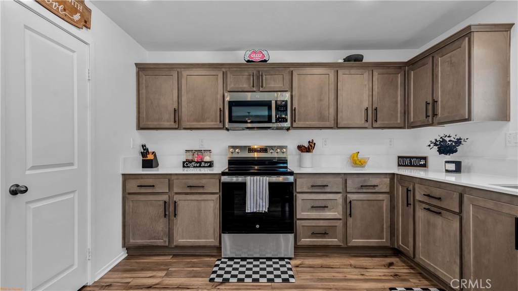 This home is move in ready. Front and Back yards are landscaped and have very low maintenance. Featuring 4 Bedrooms and 3 Baths with a nice layout. Main bedroom with a private bathroom and walk in closets, Dual Sink Vanity. Elegant kitchen cabinets with lots of storage space and quartz counter tops. Very spacious bedrooms and living areas. Upgraded laminate flooring. Ceiling Fans. Indoor Laundry Room. Leased solar panels to save on your electric bill. Artificial grass makes the yard stand out all year while adding savings to your water bill. The back yard has a large concrete patio as well as a diamond shape design with pebble rock adding a nice touch. The garden area has bushes and citrus trees surrounded by mulch ground cover; as the plants and trees mature, this area will fill in with green and make it an appealing background as you exit to the back yard. HOA amenities include POOL/SPA, Outdoor Barbecue, Palyground, Sports Court, Hiking trails and more. Very nice home and Very nice community ready and available for a quick esrow !!! Come and take a look.