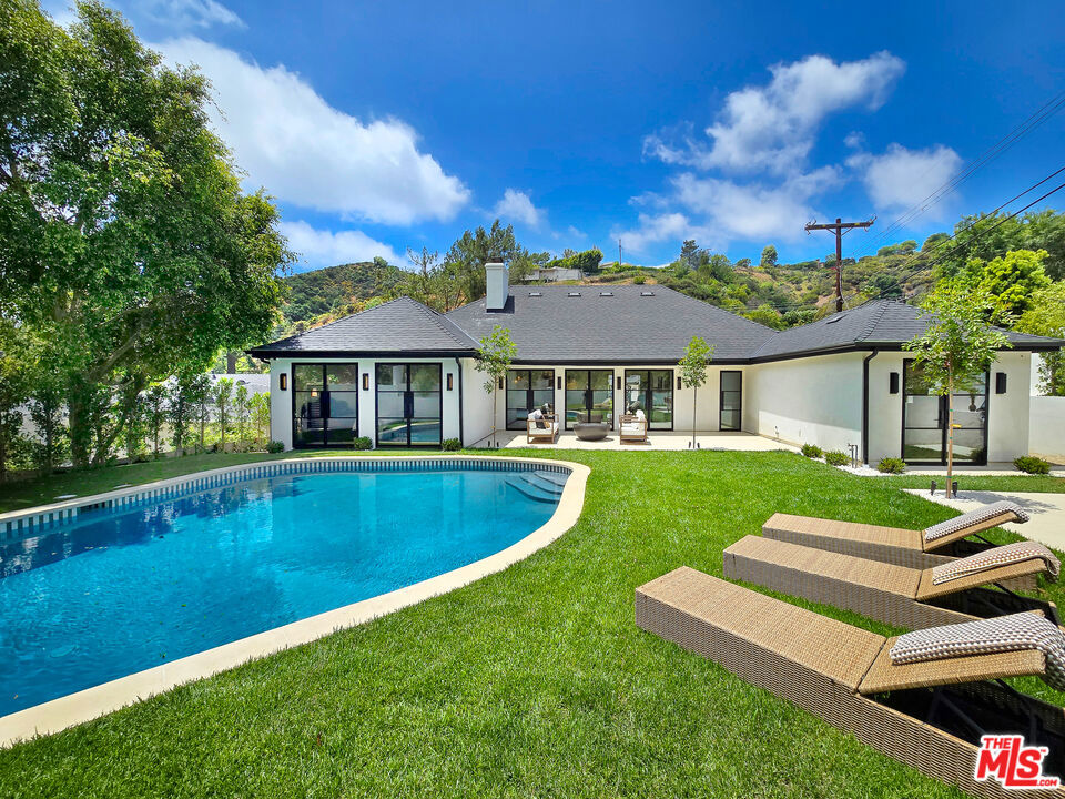 Perched on a corner lot of a serene knoll in the heart of Beverly Hills’ coveted Coldwater Canyon, this exquisitely just remodeled single-story Contemporary estate is a newly completed design masterpiece by renowned designer Nina Takesh. Spanning over 2,900 square feet, this four-bedroom, five-bathroom residence redefines bespoke luxury, blending refined sophistication with effortless California living. From the moment you enter through Pinky’s custom iron doors, it’s clear no expense was spared. The home features engineered herringbone wood floors, Roman Clay walls by Portola, and custom finishes at every turn. The entire property is outfitted in real marble, lending timeless elegance and material integrity throughout. The formal entry, accented by a coved ceiling and sculptural plaster chandelier by Visual Comfort, opens into an oversized, step-down family room that connects seamlessly to a designer bar and dining area. The bar features a rare, hand-hammered polished steel sink by Mick De Giulio for Kallistaone of many exceptional selections, as every plumbing fixture in the home is exclusively from the luxury brand Kallista. The formal living room is centered around a one-of-a-kind fireplace clad in dramatic Rosso Levanto marble and opens to the expansive backyard through three sets of glass doors. The chef’s kitchen is a study in both beauty and functionality, with a central island, breakfast bar, top-tier Jenn Air appliances, Calacatta marble backsplash, and flawless flow. All four bedrooms are en suite, including the luxurious primary suite with a walk-in closet and private access to the backyard. Every bathroom features custom glass shower doors inset with a mix of polished nickel and brass, adding a tailored, jewel-box quality to the spaces. Outside, the newly redone resort-style pool, built-in BBQ station with refrigerator, al fresco dining area, and lush landscaping creates a true entertainer’s paradise. There’s even a dedicated dog run for your four-legged guests. Lighting has been curated down to the last detail: all decorative fixtures are by Visual Comfort, and the recessed lighting is powered by Elemis, Visual Comfort’s most advanced home lighting solution. A state-of-the-art home automation system ensures effortless control of lighting, climate, and entertainment. Additional highlights include elegant wainscoting throughout and premium architectural hardware from the luxury Australian brand Bankston. Just minutes from the legendary Beverly Hills Hotel and the world’s most coveted shopping and dining on Rodeo Drive, this top-of-the-line residence offers an extraordinary level of design, customization, and comfort designed for the most discerning buyer.