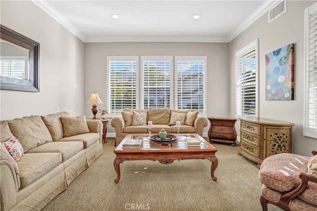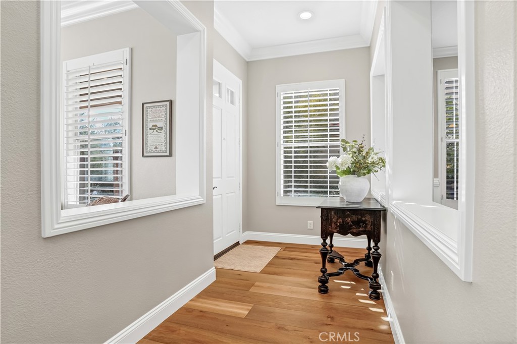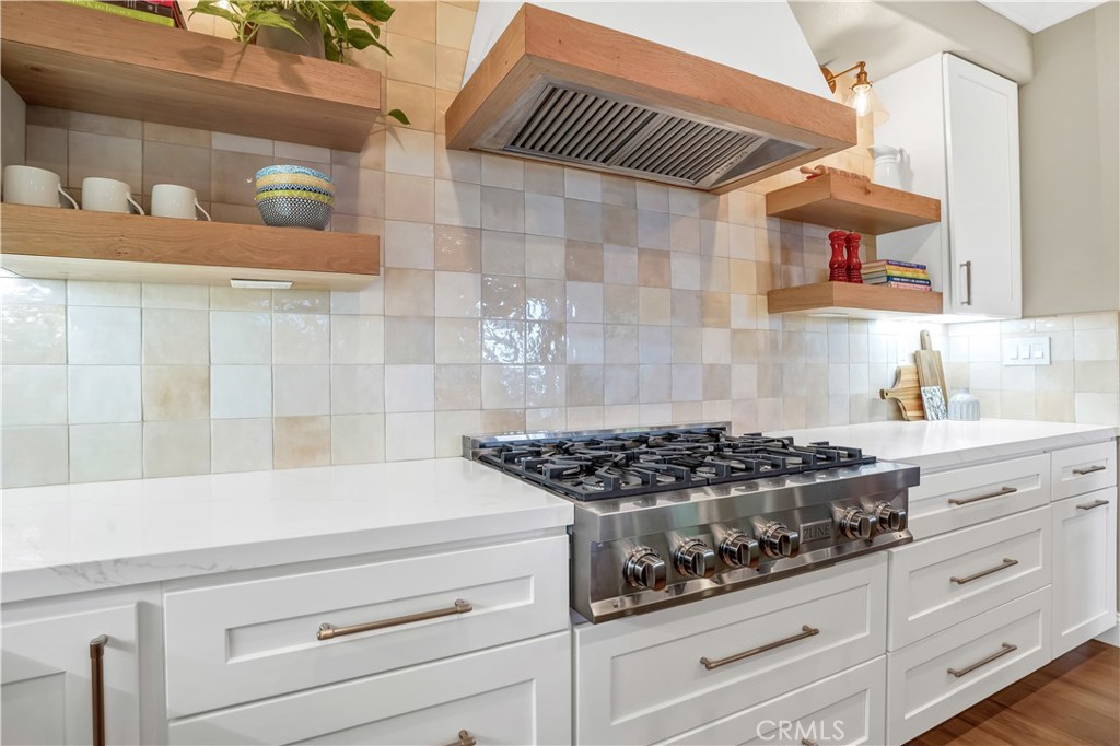 Welcome to your beautiful Guard Gated Stone Ridge home located on a quite cul-de-sac with Mission Viejo Lake views! This impressive 5 bedroom 3 full bath home has a stunning California room accessible through the fully retracting La Cantina folding Glass doors (with screens). The California Room features include a 60 inch majestic gas fireplace, TV, Motorized Hunter Douglas Shade and overhead heater and fan. The Outdoor Dining Area is located adjacent to the California Room and includes a covered patio, overhead heater and fan as well as a Hunter Douglas Shade. A separate BBQ area is situated under a pergola and includes a 42 inch Lynx Sedona built in grill, beverage refrigerator and Bar Seating. Belgrad porcelain pavers connect the California Room and Outdoor dinning area. The Backyard also features a built in raised Fire pit with seating as well as a custom fountain, raised flower beds, mature fruit trees and low voltage lighting throughout. The Kitchen was fully remodeled in 2023, including custom cabinets, all appliances and Kitchen Island with seating and loads of additional storage. French Oak Wood floors throughout the downstairs and carpet in the bedrooms and formal Living room. Primary Bedroom has Views of Lake Mission Viejo and Saddleback Valley, as well as 2 Closets and a beautiful Primary bath with walk-in shower and separate soaking tub. Close to shopping, dining and all that Mission Viejo has to offer!