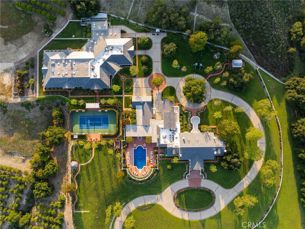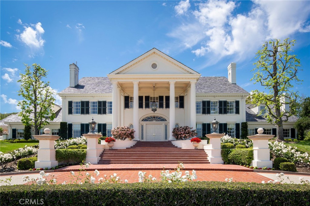 The Lyon Estate is a once-in-a-generation compound spanning within Orange County’s prestigious, private and gated community of Coto de Caza. Built in 1986 by US Air Force Reserve Commander and real estate magnate Major General William Lyon and his wife Willa Dean Lyon, this stately 21,000 sqft Georgian. The estate has welcomed many distinguished guests, including President Ronald Reagan and First Lady Nancy Reagan. This property commands breathtaking mountain views, balancing romantic, classical architecture with coastal California splendor. The Lyon Estate’s 3 level main residence encompasses 8 bedrooms, 11 baths and boasts meticulous design details at every turn, from its coffered wood ceilings and intricate crown moldings, to its ornate light fixtures, and walls of windows that frame gorgeous views of the grounds and views beyond. The long list of world-class features and amenities includes a private helipad, comprehensive equestrian facilities with a 10 stall barn and riding arena, a championship tennis court, a brick-clad lower-level wine cellar, and a playhouse outfitted with electricity and a TV. Three additional onsite guest houses provide ample space for hosting. One includes 2 bedrooms, 1 bath and a full kitchen, while the other 2 offer a single bedroom and a kitchenette. Manicured grounds present enchanting Italian villa-like gardens and seating areas alongside a resort-style pool, spa and a standalone pool house, which is complete with a dry sauna and dual bathrooms, each featuring changing rooms. A remarkable 23,679 sqft car museum comfortably accommodates 70 vehicles with a professional auto shop, recessed lift turntable, and wash station. Additional onsite amenities include two lakes used for irrigation, a scenic pond, a greenhouse, and comprising 4,500 Valencia and Navel Orange trees orchards, which took root more than 30 years ago. The Lyon Estate presents dual, equally exciting opportunities: Experience privacy and serenity with convenient access to Coto de Caza’s members-only amenities and 2 golf courses, while enjoying proximity to Laguna Beach, Newport Coast, and the best of Orange County coastal living amidst exceptionally curated beauty and turn the page in a storied legacy. The Lyon Estate awaits its next chapter—and it’s yours to write.