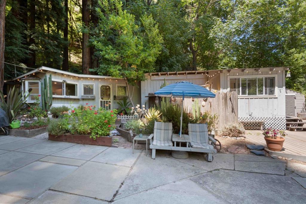 Sunlit Scotts Valley Retreat w/ ADU that rents for $2300 a month! 10 minutes from the shops, dining in Scotts Valley & Highway 17, This property blends privacy and country charm,. surrounded by trees and bathed in natural light, 4 bed/ 2 bath, with large master suite, private bath, deck & entrance, offering a quiet retreat with tranquil views. The downstairs is designed for comfort and function, with a bright great room, cozy family room, full bathroom, laundry room, and a warm kitchen that flows naturally for gatherings or everyday living. A detached 1-bedroom, 1-bath guest cottage sits just steps away perfect for hosting extended family, creating a private office, or generating rental income with washer/dryer hooks ups! The grounds are as functional as they are scenic, featuring large creek frontage, two-car garage, 2 custom-built sheds, a carport with added storage, and a wrap-around driveway for easy access and guest parking. An upper gated driveway offers room for an RV, boat, or multiple vehicles, and two more storage units.