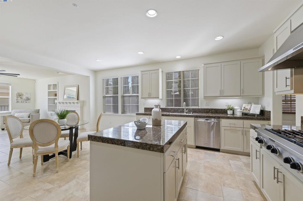 Don’t miss this rarely available 6 bedroom executive home located in the heart of the Livermore wine country. As you walk up to the WEST facing front door you will appreciate the well manicured front yard and expansive covered front porch. The interior features upgraded tile flooring, new wrought iron chandeliers, ceiling fans, and TWO DOWNSTAIRS BEDROOMS. The chef’s style kitchen is equipped with stainless steel appliances, 6 burner gas range, double ovens, built-in desk, island, granite counters and 2 walk-in pantry’s. Primary suite with oversized walk-in closet and large en-suite bath with two vanities, soaking tub and separate seamless walk-in shower. Flat usable lot with long driveway, covered porte cache, large grassy area, stamped concrete patio and fruit trees. Plenty of room for POOL or ADU and washer/dryer and refrigerator INCLUDED! Don’t miss this stunning home!