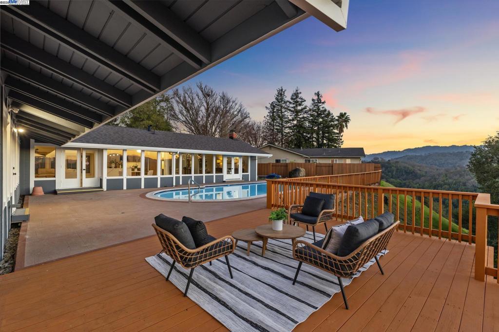 Discover the epitome of luxury living in this stunning single-story home nestled in prime Alamo. Recently completely remodeled, this exquisite home boasts 4 spacious bedrooms and 2.5 bathrooms within a generous 2663 square feet situated on a private 1.36 acre lot. Step into the elegant formal living room, where a cozy fireplace creates a warm ambiance, all while enjoying panoramic views of the sparkling pool, expansive deck, and picturesque rolling hills. The chef’s kitchen is a dream, featuring stainless steel appliances, Viking range, a large island with waterfall edges, custom cabinetry, and a separate eat-in area ideal for casual dining. Adjacent to the kitchen, the inviting family room, complete with another fireplace, provides a perfect relaxing gathering space. Retreat to the luxurious primary suite, which offers breathtaking vistas. Relish in your private backyard oasis with pool, deck, and of course stunning views; perfect for al fresco dining and gatherings with friends and family. Roof is five years old. Conveniently located near major commute routes, top-rated schools, and numerous outdoor activities, this home presents an unparalleled opportunity to own a slice of paradise in Alamo.