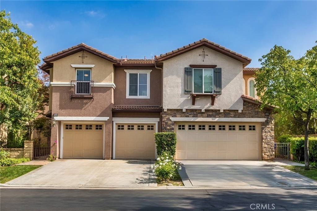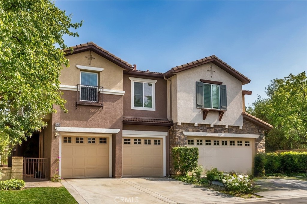 Welcome to this exquisitely upgraded townhome, nestled within the prestigious gated community of Bella Ventana in Westridge. Boasting nearly 2,000 square feet of refined living space, this stunning residence offers 3 bedrooms, 3 bathrooms, and a versatile loft, all situated on a peaceful cul-de-sac just moments from The Oaks at Valencia private golf course. Step inside to discover rich wood like flooring, tasteful designer finishes, and inviting paint selections. Oversized windows bathe the interior in natural light, while recessed LED lighting and sophisticated fixtures add an elevated ambiance throughout. The chef-inspired kitchen is a true showpiece, showcasing brand-new shaker cabinetry with soft-close functionality, sleek quartz countertops with a breakfast bar, and premium stainless steel appliances. The adjoining family room, complete with a cozy fireplace, opens to the serene backyard—perfect for relaxed gatherings. The spacious dining area is ideal for entertaining and enjoys views of the backyard as well. Upstairs, the luxurious primary suite offers a private retreat with a spa-like en-suite bath featuring custom stone wall tile, an oversized double vanity with quartz counters, a walk-in shower, and a freestanding soaking tub. You will love the huge walk in closet and access to a private balcony for enjoying warm summer evenings. The additional bedrooms are generously sized and thoughtfully finished with designer lighting and ample closet space. A beautifully renovated hall bath features a double vanity with quartz counters and an abundance of storage and a custom tiled tub/shower combo. The expansive loft offers endless possibilities—ideal as a library, office, or additional lounge space—with its own access to the upper balcony. Outdoors, enjoy a low-maintenance yard with a charming patio area perfect for entertaining. Additional highlights include an attached two-car garage, an upstairs laundry room, and abundant storage throughout. Residents of Bella Ventana and Westridge enjoy access to resort-style amenities including pools, spas, a clubhouse, tennis courts, sport courts, parks, and lush common areas—all within close proximity to award-winning schools, shopping, and convenient freeway access.