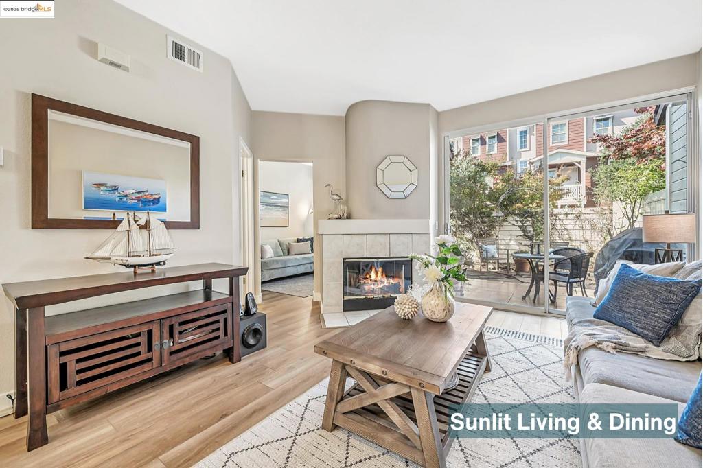 Rare Marina Bay townhouse-style condo that lives like a single-family home! Soaring vaulted ceilings, abundant natural light, and a cozy fireplace welcome you inside. The open floor plan includes a modern kitchen with stainless steel appliances, gas range, tile counters, and sleek fixtures, A full bedroom and bath on the main level make hosting guests, working from home, or multi-generational living effortless. Unlike most condos, this home features an expansive private yard—perfect for entertaining, gardening, play, or simply relaxing in your own retreat. Upstairs, enjoy two en-suite bedrooms, including a spacious primary retreat with vaulted ceilings, walk-in closet, and double vanity. To all the “no garage is a deal-breaker” buyers—this one delivers! Comes with a one-car garage for your car, bikes, toys…or even your “organized” junk, plus an assigned parking space! HOA amenities include gated entry, pool, hot tub, guest parking, and lush landscaping. Just blocks from Marina Park and Marina Bay Yacht Harbor, with access to the Bay Trail, waterfront views, and a lively Farmers Market. Ideal for commuters with easy access to Hwy 580/80, BART, and the Richmond–San Francisco Ferry. This home doesn’t just offer a place to live—it offers a true California lifestyle.
