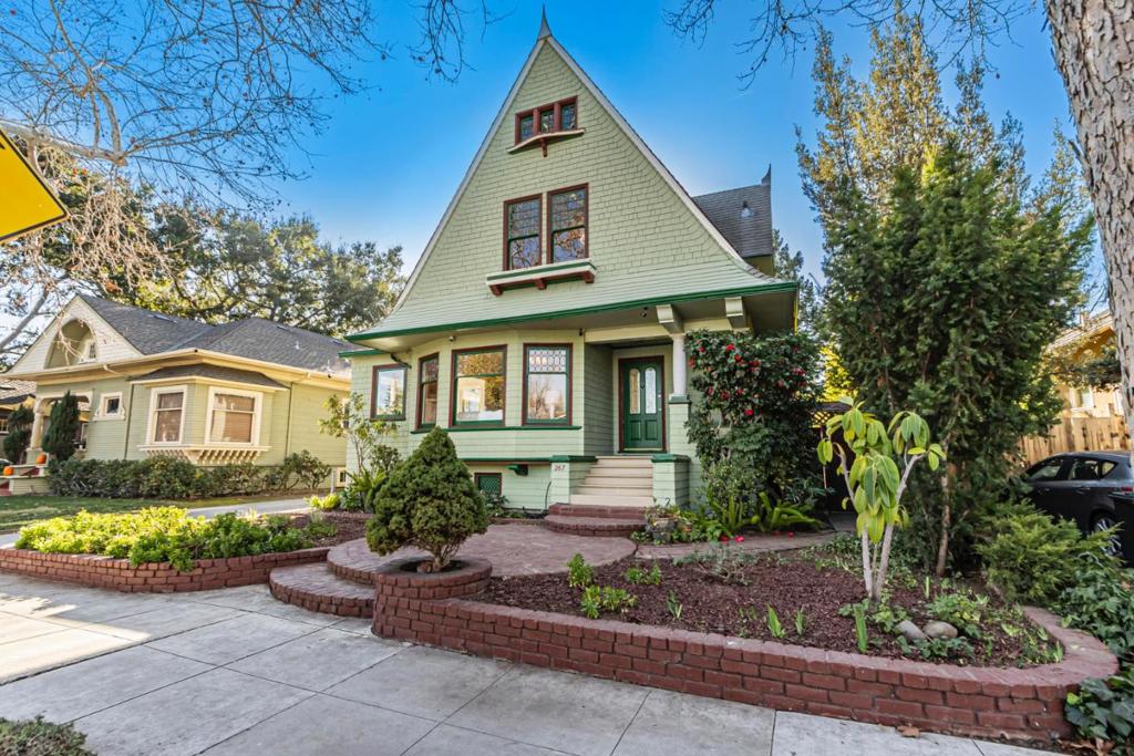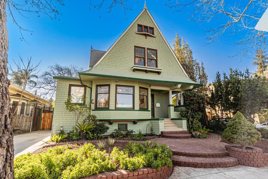This 1903 shingle style home in Naglee Park shows the timeless grandeur of the architectural style of the period. Breathtaking soaring roof lines and dormers, so many windows the home is bright with sunlight. Attached ADU with a 2nd full kitchen- great room and separate bedroom, with private entry, ideal for in-law quarters or terrific rental opportunity! The entire home has been refreshed with refinished hardwood floors, new paint, several new light fixtures and brand-new carpeting on the stairs and top floor. First floor has a formal entry with a pocket door to a huge living room and a sunroom which is an ideal space for an office. The formal dining room has a wood burning fireplace, and a pocket door that leads into the attached ADU. The eat-in kitchen is large with laminate flooring, a breakfast nook and tons of cabinet space. 3 spacious bedrooms upstairs. A huge attic thanks to that incredible roof line. The basement offers more storage and laundry area. Lovely private back yard with a 2-car garage. This home was one of the first of Naglee Park development and this home was commissioned by a daughter of General Naglee. Enjoy this home for its charm and marvel in its history. Just blocks from SJSU, downtown dining and entertainment, and easy commute access.