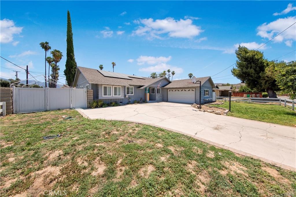 GREAT POOL HOME. This home features 3 bedrooms 1.75 bathrooms, plus a gaming room/office loft. The living room has a large stone fireplace, French doors, a formal dining room and kitchen with a breakfast nook. This home is located on a huge corner lot in a desirable community of Hemet. The backyard pool is perfect for family gatherings or just relaxing in the sun. Attached two-car garage with plenty of storage space, plus RV parking and 2 sheds for additional storage! Home comes equipped with leased solar panels so you can run A/C all summer long.