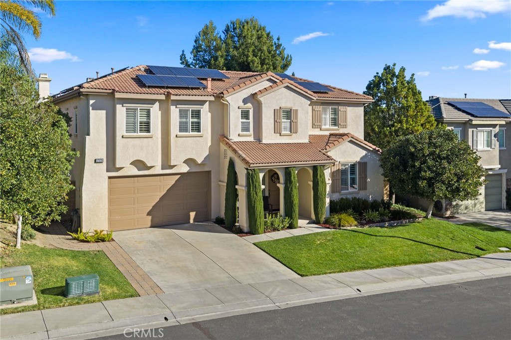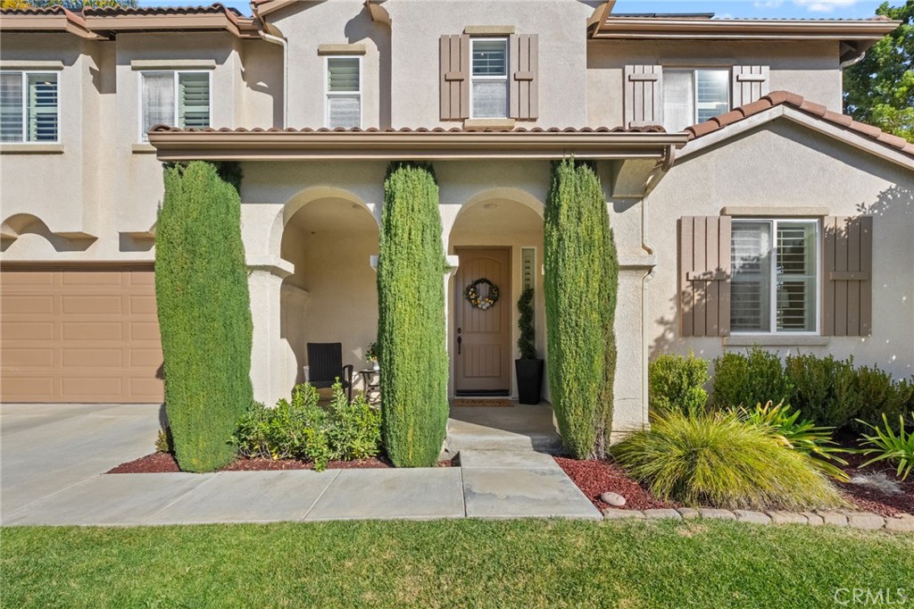 *TURNKEY *MAIN FLOOR BR *1/3 ACRE LOT *PRIVACY * SOLAR Welcome home to this beautifully appointed 3,948 SF residence tucked away on a quiet cul-de-sac in the prestigious guard-gated Greer Ranch community. From the moment you arrive, curb appeal shines w/ mature trees, freshly painted garage door, front door & shutters, & a charming front porch-perfect for relaxing while watching kids play. Step inside to soaring two-story ceilings, natural stone floors, neutral paint tones, & an inviting sense of space and light. Guests will appreciate the privacy of the MAIN FLOOR BEDROOM with recessed lighting & ceiling fan, conveniently located next to a full bath with walk-in shower. A separate living room with abundant windows, plantation shutters & recessed lighting offers flexibility as a formal sitting area or ideal home office. The dining room sits across from French doors opening to the backyard, creating seamless indoor-outdoor entertaining. Down the hall, the heart of the home unfolds into an open-concept kitchen & family room. The updated kitchen features white cabinetry, granite counters, S.S. appliances, double ovens & a butler’s pantry, all open to the family room w/ fireplace, ceiling fan & custom wood plank accent wall. A secondary dining space provides another gathering spot for everyday meals. Upstairs, newer luxury vinyl plank flooring leads to a bonus room w/ balcony, 3 secondary BRs including one w/ ensuite bath, a spacious laundry room w/ sink & storage, & a large linen cabinet. Tucked down the hall for added privacy, retreat to the primary suite featuring a cozy fireplace, private balcony, spa-like bath with dual sinks, jetted tub, separate shower & an oversized walk-in closet. Thoughtful upgrades include SOLAR to save $, CROWN MOLDING, a RING doorbell, alarm system, NEST thermostats & 1 newer HVAC system. Set on approx 1/3-acre, the backyard is an entertainer’s dream with paver patio, built-in BBQ island with fridge & sink (stools included), pergola seating area & gas firepit. Follow the staircase to the top of the hill to take in star-filled skies, surrounding hills & open space. Low-maintenance artificial turf provides room for pets & play. Greer Ranch offers 24-hr guard-gated security, pool, spa, parks, clubhouse, community events, basketball court & nearby hiking & biking trails, is located w/in the highly regarded Murrieta school district & is nestled in the hills yet minutes from shopping, dining, hospitals & ez access to the 215 & 15 fwys.