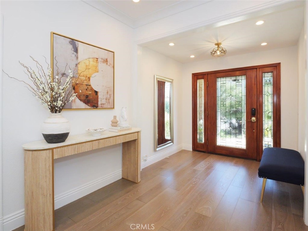 View! View!! View!!! Perched in the heart of Palos Verdes, this beautifully remodeled home showcases unobstructed, panoramic ocean view stretching from Catalina Island to Malibu, including a view of the iconic Queen’s Necklace. Enjoy breathtaking sunsets and twinkling coastline lights from both the interior and the private backyard, views that are truly rare and captivating. Meticulously renovated in 2021 and over the years, this turn-key residence boasts a new kitchen, 3 bathrooms, hardwood French Oak floor, double pane windows/sliding doors, modern barn doors, interior paint, lightings, a reimagined backyard and much more. These improvements spare the next owner the time and effort of remodeling, allowing immediate enjoyment of the home. A landscaped front lawn and inviting walkway lead to a high-ceiling foyer, opening to a living room with a cozy fireplace and an intentionally raised cathedral ceiling that enhances the sense of openness. The living room flows seamlessly into the dining room that connects to the remodeled kitchen, creating an ideal layout for both daily living and entertaining. The kitchen is thoughtfully designed with quartz countertops, custom cabinetry, and a large dining counter positioned to take in the ocean view. Nearby is a spacious family room, perfect for gatherings, relaxation, and enjoying the view, complete with a second fireplace and direct access to the backyard. A former fourth bedroom was incorporated to expand the family room and can easily be converted back into a bedroom or home office. A full bathroom on this level adds flexibility and convenience. ON THE UPPER LEVEL, the primary suite showcases large garden windows that capture the vista, a wall of closet, and a beautifully remodeled bathroom. Two additional bedrooms, one of which also enjoys an ocean view, share a hallway bath. All bathrooms are finished with quartz countertops, shaker cabinetry, and rain shower heads. Designed for effortless outdoor living, the private backyard offers an open patio, gazebo with seating area, fire pit, and jacuzzi, all set against the stunning ocean backdrop. Even the garage has been upgraded with an EV charger, built-in storage cabinets, wall organizers, and an epoxy floor. Ideally located near award-winning Palos Verdes schools, shops & restaurants, this move-in-ready home delivers panoramic views, modern comfort, and exceptional coastal setting. A rare opportunity not to be missed!