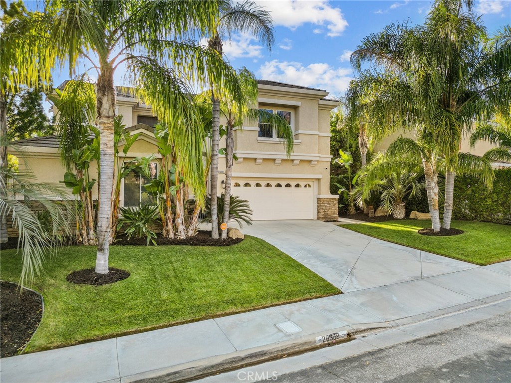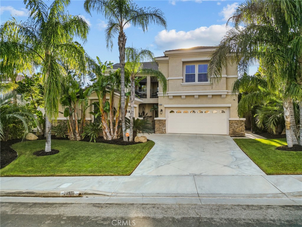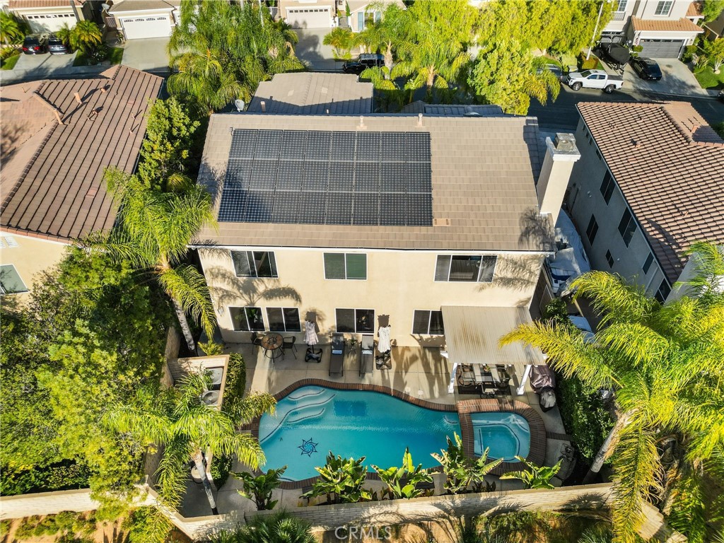 Nestled in the prestigious Miramonte community in Copperhill North, 28389 Paragon Drive is a stunning turnkey pool home inside and out. NO HOA and MELLO ROOS!!! This home has 5 bedrooms, 3 bathrooms with a loft. The 5th bedroom has been converted into a wine room. This residence exudes elegance and function, offering the perfect sanctuary for families and entertainers alike. The property greets you with refined, upgraded landscaping less than five years old and a custom paver courtyard, setting the stage for the splendor within. The sophistication and ambiance downstairs with comfort and privacy upstairs makes this home as much an experience as it is a dwelling. The spacious interior boasts dark wood-look tile throughout the main floor, a striking wooden staircase with custom banisters, and a one-of-a-kind, wine room with a climate controlled mini-split refrigeration system. Custom-built wine fridges and racks complete this wine room. The main living areas feature a total surround sound system, extending to the backyard to create a seamless audio experience indoors and out. The kitchen is both functional and stylish, granite countertops, double oven, trash compactor, spacious walk-in pantry, custom drawer inserts for organization, breakfast nook and flows effortlessly into a family area with a gas fireplace and recessed lighting that continues into the living room. Outside, the recently resurfaced and retiled pool sparkles as the centerpiece of an outdoor oasis, complete with a remote-control system (Pentair ScreenLogic) and shaded by a newer covered pergola. Privacy is enhanced by 14 newly planted wax-leaf privets, allowing for tranquil relaxation. Additional notable features include: Built-in cabinetry in the office and primary suite, Custom-built dressers in the primary walk-in closet for elegant storage, Granite tile surrounding the fireplace for a classic touch, 3 Car garage, a generator for peace of mind during outages, alongside a leased solar system (Epiq) for energy efficiency. Coded door locks for security and convenience. A Vivint alarm security system, offering robust protection. Experience luxury, functionality, and artful living in one of Santa Clarita’s most desirable locations. Schedule a private showing today and let 28389 Paragon Drive welcome you to your ideal retreat!