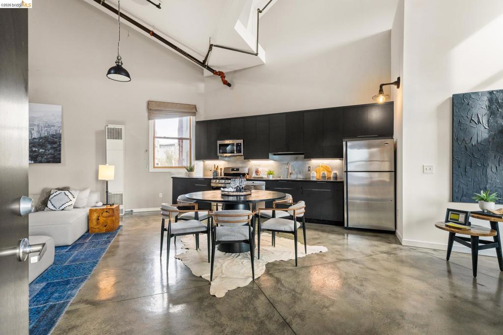 This unique waterfront community is tucked away along the Bay Trail on the estuary’s edge in Oakland – a stone’s throw from the Park Street Bridge and the best Alameda has to offer. Achieve your loftiest goals where industrial chic meets modern design, featuring a spacious open floor plan with soaring cathedral ceilings and sleek concrete floors. The wide open-concept kitchen is ideal for seamless entertaining that spills into the dining and living areas. Find privacy in the main level bedroom with en suite bathroom while the spacious upstairs loft offers a flex space for a bedroom, office, or creative space. An additional bathroom rounds out the loft’s offerings. Complete with in-unit laundry, ample storage, designer light fixtures, and gated parking with deeded parking.