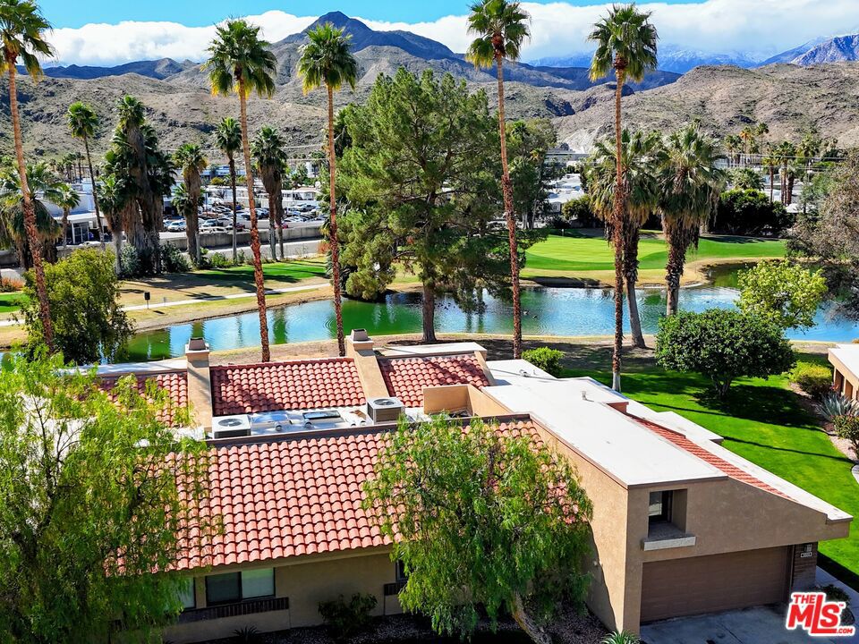 Set lakeside in one of the most desirable perimeter locations within Cathedral Canyon Country Club, this 3-bedroom, 2-bath residence offers 1,826 square feet of light-filled living with uninterrupted mountain, golf course, and water views. Positioned on the outer edge of the community, this is one of only a limited number of homes that does not look into neighboring units or over rooftops, allowing for rare privacy and wide-open sightlines to the surrounding mountains and landscape. The open living and dining areas are enhanced by skylights and expansive glass doors that frame the lush fairways, tranquil lake, and dramatic desert scenery beyond. The refreshed kitchen features crisp white cabinetry, stainless appliances, and a bright breakfast nook with picturesque water and fairway views. The primary suite is a serene retreat with a separated private patio access and a spacious ensuite bath with dual vanities, soaking tub, and separate shower. Two additional bedrooms offer flexible use for guests, office, or den. There is also a large 2-car garage with ample storage space. Recent upgrades include a newer A/C system, skylights, carpeting, and travertine floors that have been professionally stripped and polished to a beautiful high-gloss finish. The bedrooms feature new contemporary plank flooring in warm, natural wood tones. Step outside to an expansive covered patio offering distinct spaces for dining and relaxed lounging, framed by a charming low wall and gate that gently define the space, all overlooking sweeping lakeside and mountain views. Cathedral Canyon Country Club offers multiple pools and spas, golf, tennis, and beautifully maintained grounds, all in a prime location close to shopping, dining, and outdoor recreation. This charming residence, tucked along the lake in a serene setting with pine trees overhead and water birds gliding across the lake, captures the quiet luxury of desert living. Enjoy peaceful morning coffee by the water, sunlit afternoons beneath open skies, and evenings washed in mountain silhouettes. This is a home designed not just to be lived in, but to be experienced. It offers a private retreat where space, light, and landscape come together to create a lasting sense of calm and connection to the natural beauty of the desert.