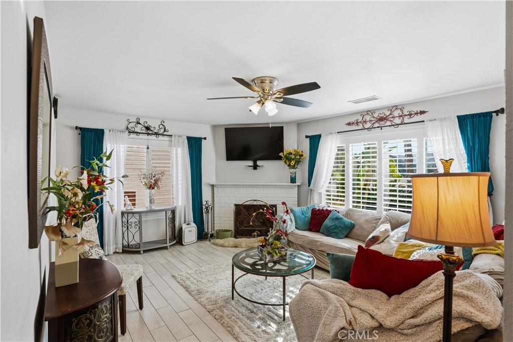 This upgraded home checks all of the boxes! A beautiful single story home in turnkey condition, it calls to both the retiree or the starter family. Located in the resort city of Canyon Lake where residents love their toys, this over-sized lot has the possibility to have both RV and boat parking on the side yard. The pull through epoxy floor finished garage makes it easy to park the cars and the golf cart and breeze through the other side for easy access. Enjoy the great outdoors as you dine al fresco under the new aluminum patio complete with lights and fans. Take advantage of the above ground spa then warm up around the fire pit at night. This is an entertainers dream! The house interior offers laminate wood flooring with upgrades throughout. Enter the living room and imagine the winters and holidays next to the roaring fireplace. It is well lit from the windows and offers wood shutters not in only in this room but throughout the house. The beautiful granite countertops compliment the cupboards and the stainless steel appliances in the kitchen. The breakfast bar has seating for three and the dining area flows right into the kitchen space. This room overlooks the outdoor covered patio and gives you the sense of being on vacation. Down the hall are the three bedrooms and guest bath. The primary bedroom offers a wonderful place to relax and escape. It has a view of the patio through the plantation shutter slider and has easy access to the spa. This room boasts a bonus suite that acts as both a walk-in closet, office space, and beauty bar area. Let your imagination take over and make this extra space your own. This bedroom also has a tumbled stone walk-in shower with overhead shower spray. This room truly is a great retreat! One of the other bedrooms currently serves as a home office and is suited with industrial type desk couters to operate from. It can easily be converted back if needed. This house reallly does have so many possibilities and is waiting for you to enjoy all it has to offer.