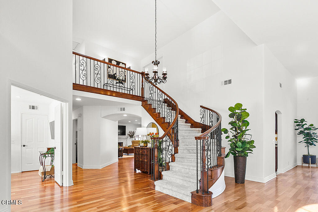 Nestled atop a ridge in the highly desirable Bridlewood neighborhood, this stunning panoramic view estate is located on a peaceful cul-de-sac, offering unparalleled privacy and tranquility. Spanning over 3,600 square feet, this expanded home boasts exceptional architectural elegance, from the designer curved wood and wrought iron spiral staircase to the gleaming hardwood floors. The resort-style backyard is a true oasis, featuring a swimming pool with a beach entry, a spa, and beautifully landscaped grounds, ideal for both relaxation and entertaining.The interior of this completely remodeled home flows seamlessly, with an open layout that connects the main living areas, showcasing a continuity of design and form. The gourmet island kitchen is a chef’s dream, complete with granite countertops, a travertine backsplash, stainless steel appliances, a pot-filler over the range, and a walk-in pantry. The spacious family room, which opens to the kitchen, creates a welcoming great room atmosphere, complete with a cozy fireplace and a dedicated office area with French doors leading to the rear yard. Upstairs, you’ll find four generously sized bedrooms, including the luxurious master suite with a beautifully remodeled bath featuring dual sinks, a jetted tub, and a large walk-in closet. A fifth room downstairs offers flexibility for use as a guest room, with easy access to a full bath. Additional amenities include extra deep 3 car garage, detached storage building and side access for small RV or boat storage.Located within the award-winning Santa Rosa School District, this exquisite home is the perfect blend of comfort, style, and functionality.