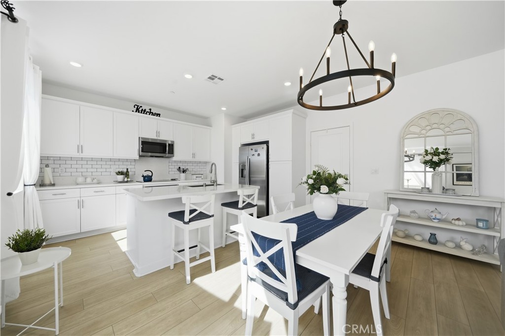 How does a beautiful new build in the middle pocket of town where they are done building homes sound? This 6 month old home is like buying a brand new model home with all the designer touches already done throughout! Gorgeous, light and bright 2025 Lennar townhome within the Murrieta School District boundary lines. Unfortunately due to circumstances beyond their control, the sellers have to relocate for work. This is your chance to get into a new property in one of the most desirable parts of Winchester, close to shopping dining and the French Valley Airport. This is a gated community with just 90 townhouses with plenty of community amenities including a pool, spa, and shaded park for children. The downstairs boasts a beautiful kitchen with white cabinetry, quartz countertops, deep farmhouse sink, white subway tile backsplash and GE Profile stainless steel kitchen appliances. There is also a conveniently located downstairs powder room for guests. As you venture upstairs you will notice the spaciousness of the upstairs bedrooms. These are not your typical 10×10 bedrooms that most homebuilders are making nowadays. The primary bedroom may be the best room in the house with green open space behind you and endless afternoon sunsets over the mountains behind you. Convenience of home duties abound with an upstairs oversized laundry room. Save on energy costs with a 7 panel leased solar system that’s already installed as well as a Tesla car charger in the garage. This home still has the builder warranties in place. Do not hesitate to move on this one today!