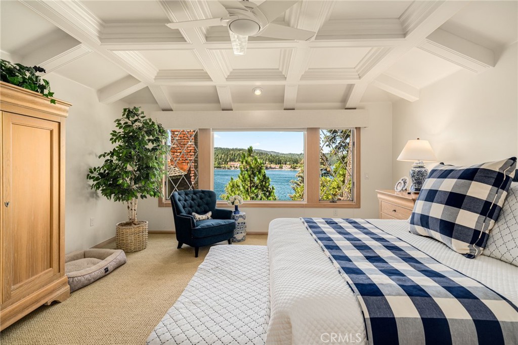LAKEFRONT, lake view homes in Lake Arrowhead – One of a kind. Located in the palisades neighborhood, walk straight into this level entry 5 bedroom, 5 Bath custom home and get blown away by the lake views and overall orientation to lakefront living. The family area and primary suite features custom coffered ceilings, and expansive west facing views (exceptional at sunset). The home is immaculate, the exterior has a NEW roof, NEW exterior paint and the detail to the construction of the brand NEW deck is impressive. This home shows an extreme pride of ownership with every detail. The access to the dock couldn’t be more perfect, nice easy path and takes you to your private lakeside patio with Single Slip Dock. The Dock amenities include, a hydro hoist under a nautical canopy, a large concrete patio for entertainment, side tie for guest and additional rear tie up, currently used for a Boston Whaler for easy convenient transportation to Restaurants, Bars, Loan Pine Island, Marina, and other Lake features. The Dock and Patio also include, a Dock House for all your sporting goods, exterior furnishings, and service area with refrigeration for beautiful afternoon entertainment for the entire family. This property is ready to enjoy. This property is viewed by appointment only. Dock Number : S333