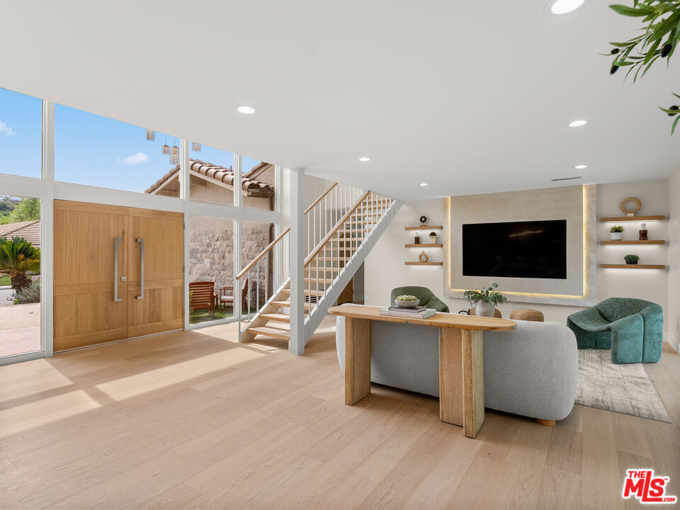 Completely reimagined and thoughtfully renovated, this stunning Westlake Village home blends modern luxury with timeless design. The residence features high end finishes throughout, including new engineered hardwood flooring and elegant indirect ambient lighting that creates a warm and sophisticated atmosphere. At the heart of the home is a designer chef’s kitchen with custom cabinetry, quartzite natural stone countertops, and premium Thor appliances. All bathrooms have been fully remodeled with premium Italian porcelain tile, and major infrastructure upgrades include a brand new roof and upgrades to sewage and plumbing lines. The outdoor space is designed for true California living, showcasing a resurfaced pool with new plaster and tile along with a luxury patio finished in imported Italian tile and an outdoor entertainment area complete with a built in TV and fireplace.