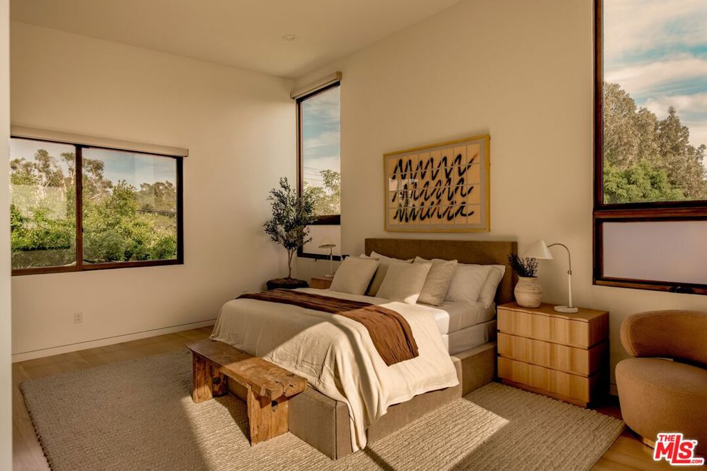 Discover unparalleled luxury living at ‘The Winge House,’ a thoughtfully designed modern home by renowned architect Tom Marble that embodies elevated Southern California living. Set on a 7,238 SF lot, this 5-bedroom, 4.5-bathroom residence offers 3,660 SF of thoughtfully designed living space across three levels. Modern and light-filled, the home is defined by expansive windows, soaring 12-foot ceilings, and seamless indoor-outdoor flow, all grounded by solid white oak engineered hardwood floors throughout. Every space is filled with natural light, creating a bright, airy atmosphere that carries throughout the home. The layout unfolds with intention from the moment you enter, where large windows draw your eye through to a private patio, setting the tone for the home’s indoor-outdoor connection. An adjacent office with a full bath sits just off the entry, offering a functional yet connected workspace that can easily serve as an additional bedroom. The lower level features two additional bedrooms, both with direct access to the backyard, along with a laundry room, opening to a landscaped outdoor setting that extends the living space for effortless entertaining and everyday enjoyment. The second level is where the main living spaces come together. The chef’s kitchen and dining area are seamlessly connected, flowing into the family room, with a double-sided fireplace subtly defining each space. The kitchen is centered around a large island and equipped with a Sub-Zero refrigerator and Wolf range, combining top-tier performance with refined design. Thoughtfully designed for everyday ease, a convenient dumbwaiter connects the garage directly to the kitchen, simplifying grocery transport. The primary suite anchors this level with a spacious bathroom featuring a soaking tub and walk-in closet, and opens directly to an outdoor patio with ocean views, alongside an additional well-positioned bedroom. The top level is dedicated to a private outdoor retreat, ideal for entertaining or relaxing above it all while enjoying sweeping ocean views. A two-car garage with a Tesla charger completes the home. Located in the heart of Mar Vista, this home offers a quiet residential setting with convenient access to Venice, Santa Monica, and Abbot Kinney, and is just moments from the highly anticipated new neighborhood park.