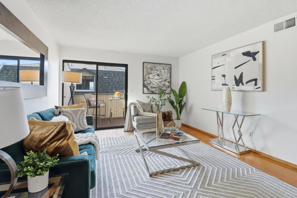 Location, location. Spacious 2 bedrooms and 1 bath. Reduced price. Upgrades, brand new dining room light/fan combo, new electric stove, new dishwasher, new bathroom mirror. The home has one car garage #116 with extra storage, and 1 assigned parking space #150. A large balcony. Additional amenities include a community pool, a recreation room, perfect for exercise, relaxation and recreation. This security complex is located within the well-established Evergreen Elementary School District, providing access to local education facilities. Enjoy living in San Jose with its rich cultural and recreational offerings. Easy access to 101.