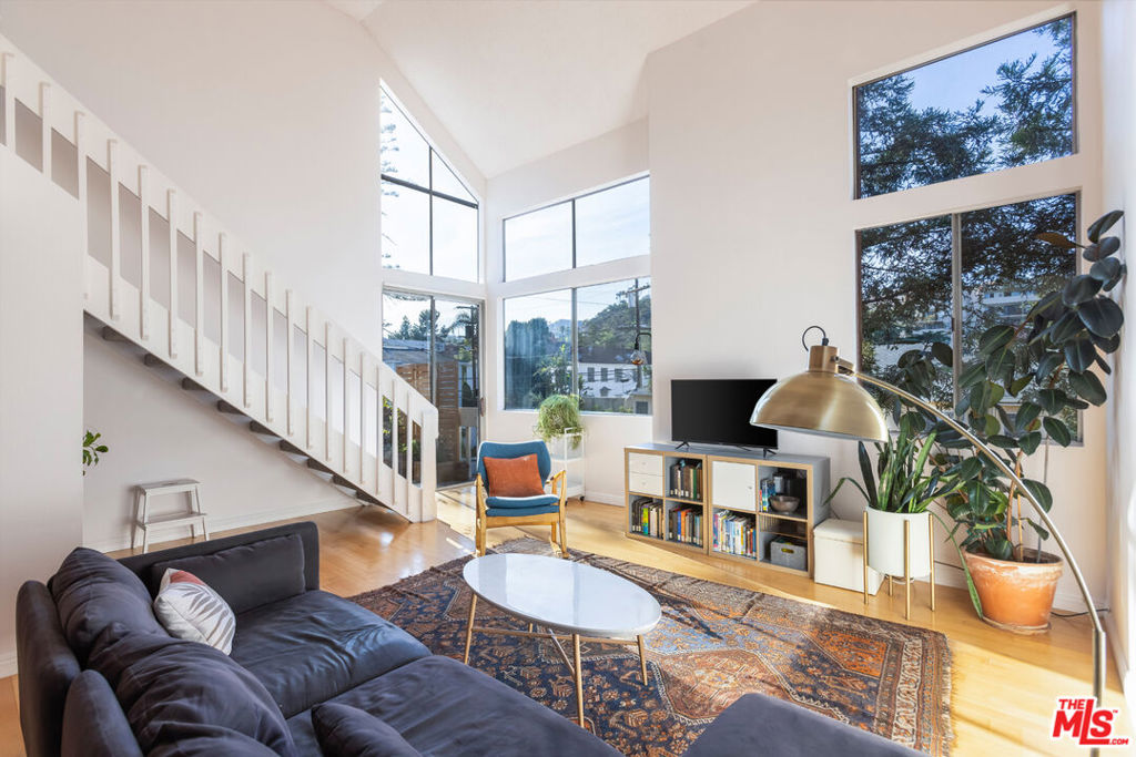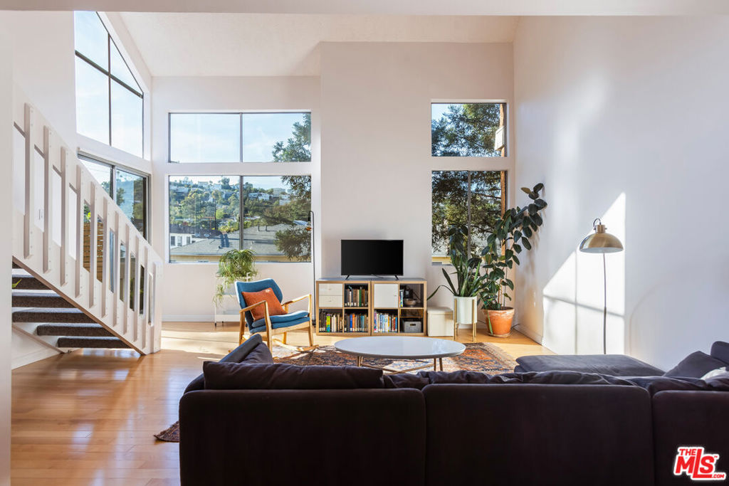 Set high above the treetops in the heart of Los Feliz, this top-floor corner residence offers a rare blend of privacy, volume, and style. With soaring ceilings, expansive windows, and no shared walls, the space feels open, quiet, and filled with natural light throughout the day.The floor plan features two spacious bedrooms and two full baths, complemented by central air and heat, in-unit laundry, and multiple fireplaces for added comfort. The generous primary suite includes a walk-in closet, while the living and dining areas open to a private patio with stunning views of the surrounding hills ideal for morning coffee or evening wind-downs. A lofted bonus space provides the flexibility for a home office, creative studio, or guest retreat. Additional highlights include two side-by-side gated parking spaces and inclusion in the highly regarded Ivanhoe Elementary School District. Just minutes from Griffith Park, the Greek Theatre, Silver Lake Reservoir, and all the best of Los Feliz and Silver Lake, this turnkey home is a unique opportunity in one of L.A.’s most desirable neighborhoods.