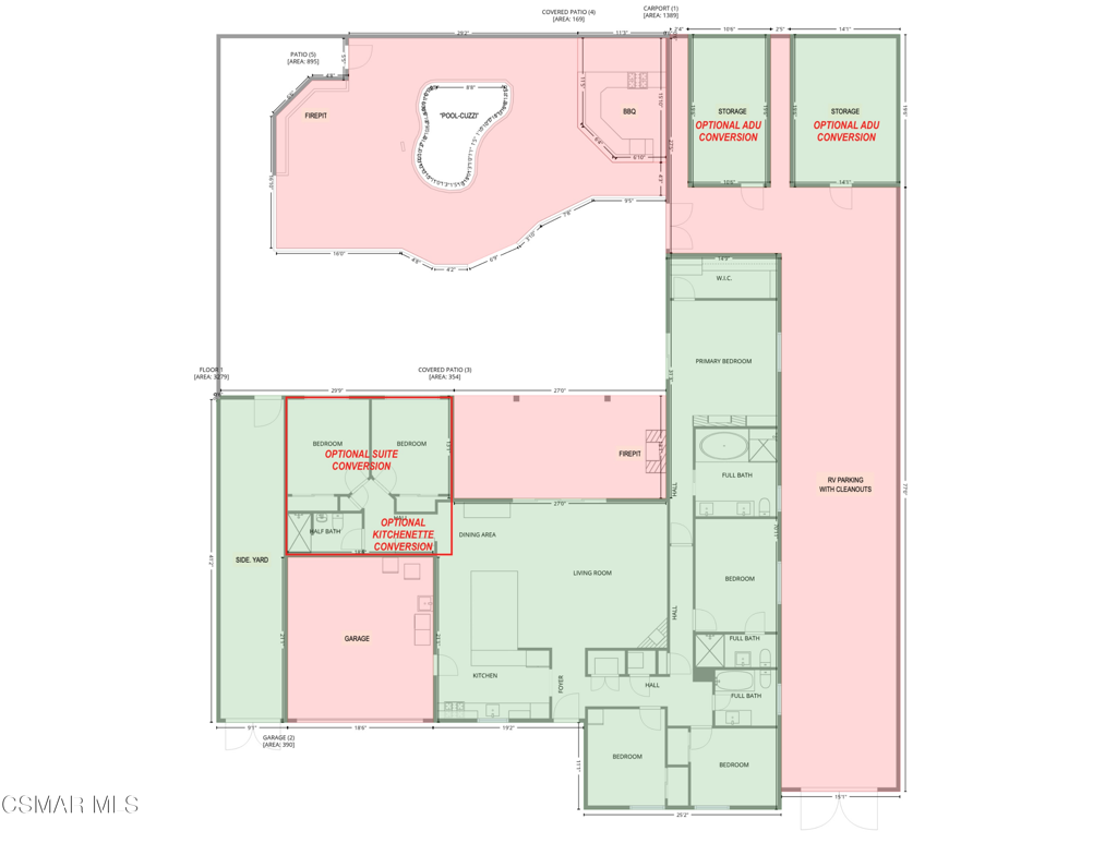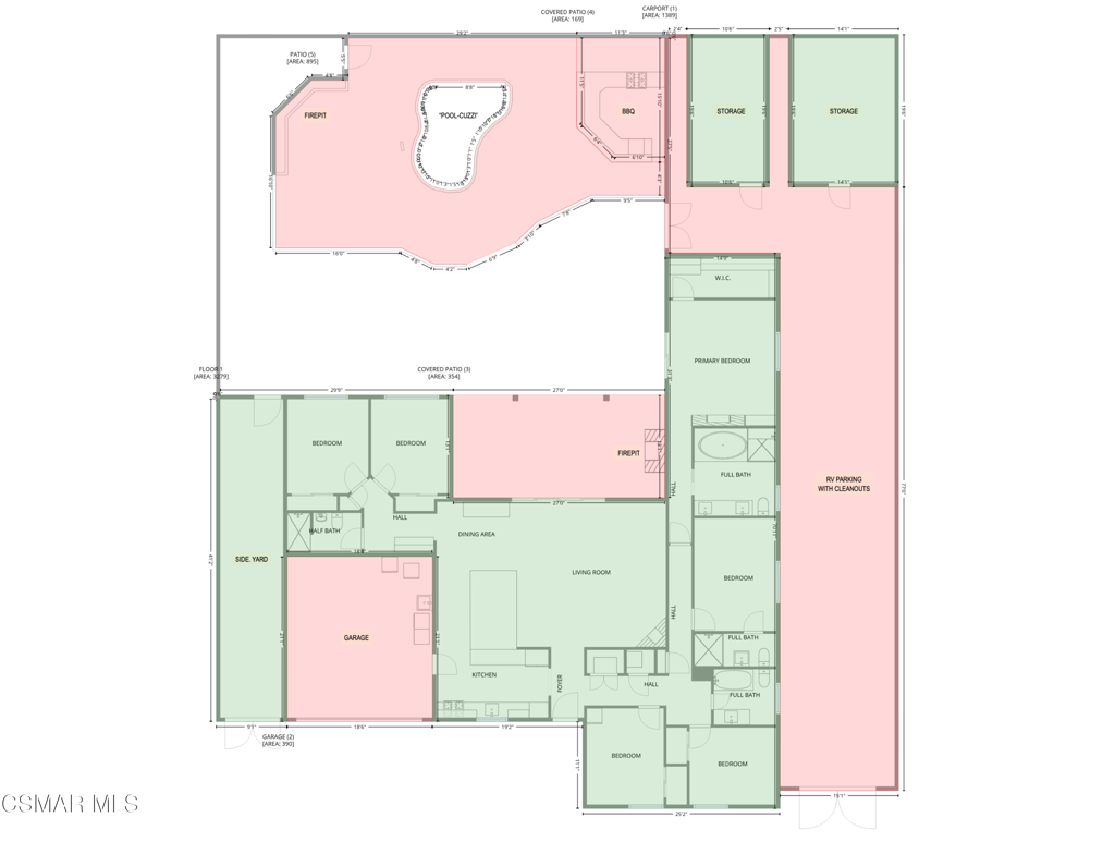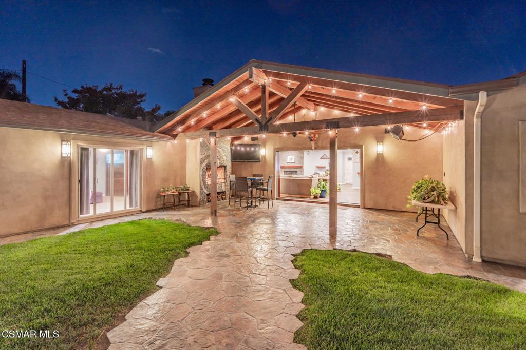 Welcome to 3391 Shenandoah Ave, Simi Valley, a thoughtfully remodeled 2,341 sq. ft. residence with 6 bedrooms and 4 full bathrooms, set on a 1/4 acre corner lot with striking curb appeal, finished in smooth stucco and natural stone. The heart of the home is the wide-open kitchen and living area, featuring a granite island with abundant storage and a spacious living room centered around a gas fireplace. Expansive multi-slide pocket doors disappear into the walls, blending the indoors with the backyard and creating the ultimate open-concept lifestyle.Outdoors, the property is designed for entertaining with an in-ground pool-spa finished in pebble tec with a stone waterfall, a cozy fire pit with seating area, a built-in barbecue with concrete counters under an open-beam patio cover, and multiple fire features. Additional highlights include a stone wall water feature, removable pool fencing, custom hardscape and concrete finishes, and ground-anchored umbrellas that rotate securely with the breeze. Inside, three independent heating and cooling zones (Nest-controlled) ensure comfort and efficiency across the living room, office/gym/bedroom wing, and master retreat. The flexible floor plan offers hidden sliding door framing, non-load-bearing walls for easy reconfiguration, and plumbing access for a private in-law suite or kitchenette (see floorplan options). Two rooms are currently used as a gym and office, and each of the four bathrooms features unique custom finishes, including a step-down walk-in shower. The master suite is a true retreat with a walk-in closet, see-through fireplace, and spa-style bath featuring heated stone floors, piped-in music, a steam shower, sauna, and an air-jetted spa tub designed for superior cleanliness. Natural stone flooring runs throughout the home and extends to the open-beam patio with its own fireplace and gas heater, enhancing the seamless indoor-outdoor flow.For RV enthusiasts, the property offers a rare 14′ x 106′ gated RV pad with full water, sewer, and power hookups plus a dedicated cleanout. Recent upgrades include two Noritz tankless water heaters (1 year old), a six-month-old barbecue and jacuzzi filter, and a new roof from the center ridge to the front of the home (2 months old). A clever dryer vent booster fan adds another layer of safety. Best of all, this property has no HOA, giving you the freedom to enjoy every one of its resort-style features. With thoughtful upgrades, a flexible layout, and rare amenities, this home is as practical as it is impressive, crafted for everyday living and spectacular entertaining.