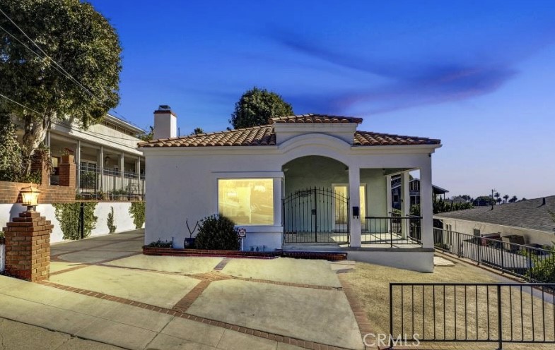 This is the one you have been looking for! The ultimate in California Coastal living has been combined with a Mediterranean Villa vibe to create this very special home that sits on the hillside and offers breathtaking views of the Pacific Ocean and Catalina Island. You’ll be captivated from the moment you pull up to the attractive exterior that features the white stucco and red tile roof that are so common with the villas frequently tucked along the hillsides in Europe. As you approach the home, you’ll enter the gated 15 ft by 17 ft loggia that features an architecturally interesting open wood-beam ceiling and amazing sunset views. This is a great space for enjoying a morning coffee or an afternoon glass of wine. Walk through the glass front door into the well-designed floor plan that offers an open concept combining the sunlit living room with fireplace, spacious dining area and a galley style kitchen that comes complete with white cabinetry, tile floor & counters and stainless-steel appliances that include a commercial Bertazzoni range. Newly refinished hardwood floors add to the beachy feeling along with high quality textured carpet that has just been installed in the bedrooms. The exquisite master suite features a fireplace, walk-in closet, the same fabulous views and a bright white bathroom with a separate sauna. The secondary bedroom is large, also has the view and offers double French doors to access the loggia. The rear yard is fabulous and features a large area finished in decomposed granite that is bordered by native plants and views that can be enjoyed as you sit around the firepit. Next is the incredible 4+ car garage that is fully finished with an epoxy floor and tons of built-in cabinetry. It’s a car collector’s dream. In addition to the massive garage, there’s driveway parking for several more cars that is secured by an electric gate. Over the top of the garage is a deck that makes the perfect spot for entertaining family and friends while taking in those breathtaking views and enjoying cool ocean breezes. At the rear of the house is a basement for storage and on the South side is another finished room under the home that makes a great gym or home office. Located only 1 1/2 blocks from the ocean in the peaceful Palisades area where every day you’ll enjoy afternoon breezes, fresh ocean air, morning walks atop the ocean bluff and hikes through the White Point Nature Preserve. There’s so much more but you’ll have to see it for yourself. HURRY!
