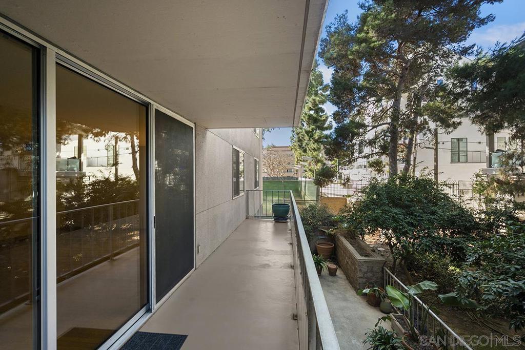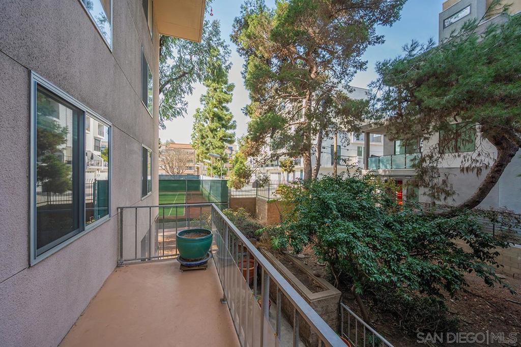 Discover the perfect blend of spaciousness and style in this northwest corner residence at Coral Tree Plaza, where urban living meets refined comfort. Sunlit and inviting, the expansive living area showcases sleek wood flooring and extends effortlessly to an oversized balcony, the largest in the complex at 30 ft. The modern kitchen boasts stainless appliances, recessed lighting, dual paned windows, ample storage, and a breakfast bar for easy, casual dining. Retreat to the generous primary bedroom, featuring a well-organized walk-in closet and an ensuite with dual vanities for added luxury. Looking for flexibility? The dining area offers the potential to transform into a fourth bedroom, adapting to your unique lifestyle needs. Additional highlights include an in-unit stackable washer and dryer, a private storage room, and two valuable side-by-side parking spaces. Located just steps from the vibrancy of Balboa Park and Hillcrest, this home puts the best of city living right at your doorstep. Embrace effortless urban living in style! As one of Hillcrest’s premier residential destinations, Coral Tree Plaza defines urban sophistication with a remarkable selection of amenities. The property features a sparkling swimming pool, a relaxing spa, beautifully maintained tennis courts, and a state-of-the-art fitness center for those with an active lifestyle. Residents enjoy the convenience of guest suites and a spacious club room, complete with a charming vintage-style fireplace, ideal for gathering with neighbors and fostering community spirit. Pet owners will appreciate the on-site dog run, and ample parking ensures guests always feel welcome. Ideally located, Coral Tree Plaza offers effortless access to the vibrant village of Hillcrest and the peaceful greenery of Balboa Park. For a taste of downtown’s energetic pulse, it’s just a quick drive away. Living at Coral Tree Plaza goes beyond simply having a home; it’s an invitation to enjoy an unparalleled lifestyle that seamlessly blends luxury, comfort, and urban convenience.