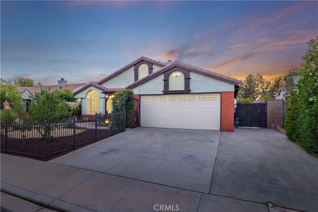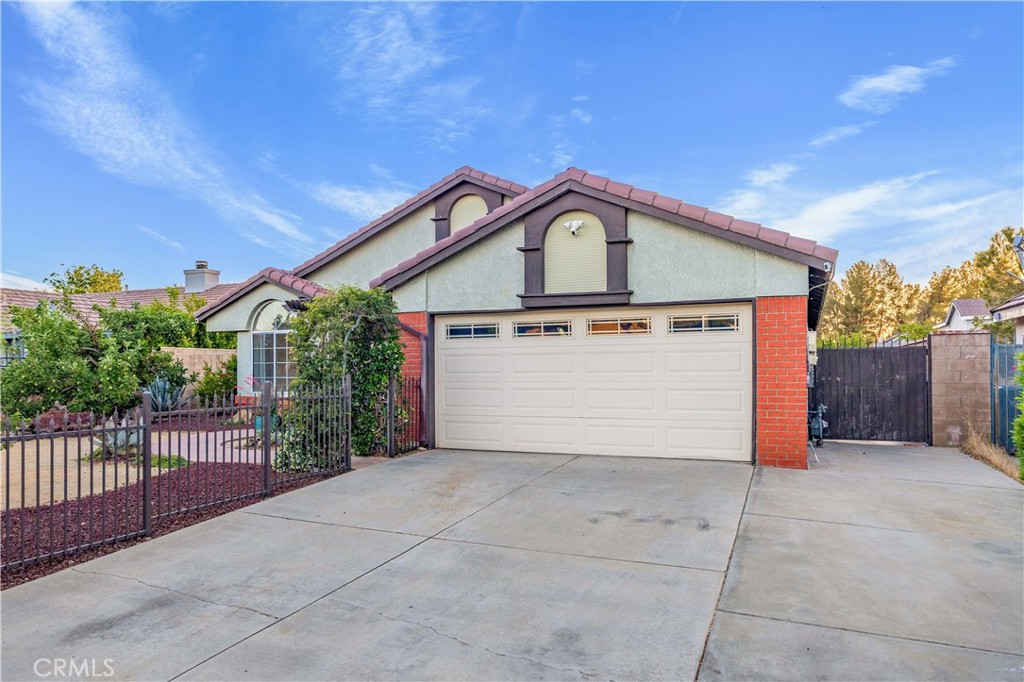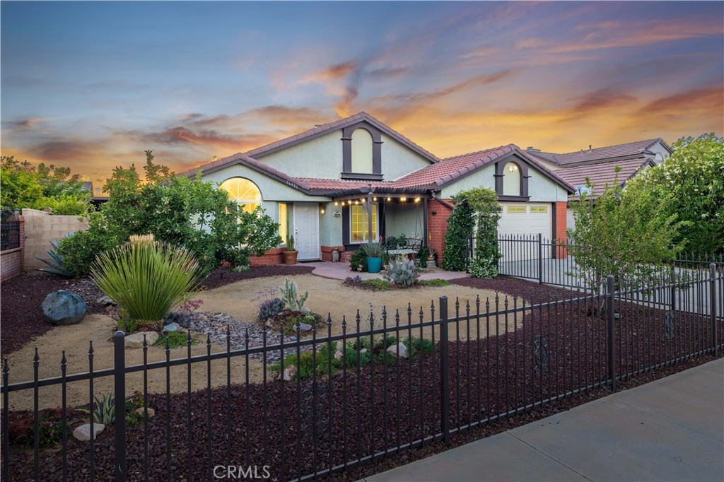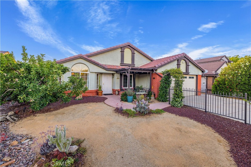 Welcome to this stunning single-story home featuring 4 bedrooms and 2 bathrooms on a beautiful lot! Offering approximately 1,400 square feet of living space on a generous 7,493 square foot lot, this home checks all the boxes. As you arrive, you’ll be captivated by the beautiful curb appeal, complete with a gated front yard, extended driveway, paver walkway, and low-maintenance desert landscaping, complemented by a peaceful pergola seating area in the front yard, perfect for enjoying a quiet morning coffee or relaxing evenings. Both the front and backyard have mature fruit trees including cherry plum, apple, fig, peach, grape, and pomegranate, enhancing the tranquil atmosphere. Inside, the home boasts a freshly painted interior, tile flooring across the main living spaces, vaulted ceilings and upgraded windows that allow an abundance of beautiful natural light, enhancing the inviting atmosphere. The kitchen is beautifully updated with granite countertops, tile backsplash, stainless steel appliances, refaced cabinets, and new fixtures. It opens to the family room, creating an inviting open-concept space ideal for entertaining. The primary bedroom is a great size and includes brand-new carpet and a walk in closet. The home also comes equipped with solar panels to help reduce energy costs and add long-term value. One of the standout features of this home is the entertainer’s backyard, which includes a large covered and partially open patio, a built-in BBQ with countertop space, seating area, and plenty of room for gatherings. The backyard continues with the beautifully designed desert-scape with additional plants, fruit trees, and easy-care landscaping. This home is conveniently located directly across from Cimarron Elementary School and just minutes from shopping centers, medical offices, parks, walking and biking trails, and Dry-Town waterpark. A quick 7 minute drive to the 14 freeway via Pearblossom Highway.