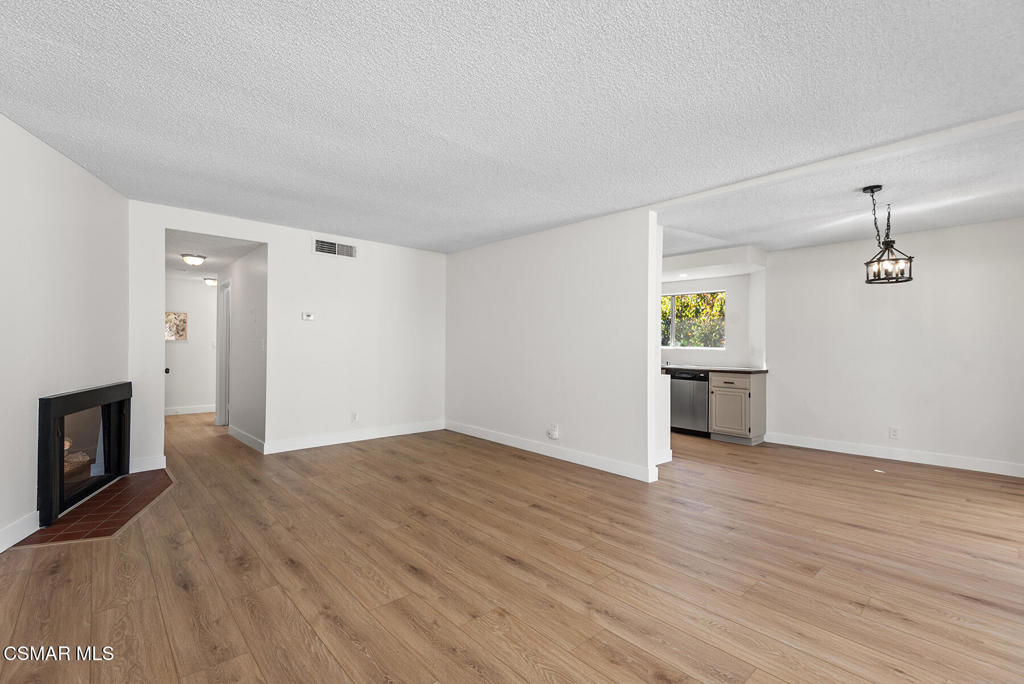 Highly desirable upper penthouse corner unit with spectacular views from almost every window in premier location across from the Westlake Landing, shops and restaurants! This beautiful 2+2 single level home features stunning new Waterproof Luxury Vinyl Plank flooring, new baseboards and freshly painted interior throughout. Light & bright with lots of windows, skylights and natural light. Updated kitchen with beautiful newly painted cabinets, new hardware, granite looking countertops and stainless steel appliances. Huge living room with brick decorative fireplace and slider to oversize balcony for beautiful views of the park-like landscaping. Separate dining area with new light fixtures. Spacious primary bedroom with mountain views and ensuite bathroom which includes large vanity, shower, and walk-in closet with built-in shelves, cabinets & organizer. Nice size secondary bedroom with mountain views. Updated guest bathroom with new fixtures & shower/tub. Indoor laundry area includes washer & dryer. 2 car garage. Complex features pool, spa, trash & water. Close to the lake, The Landing, shops & restaurants. Beautiful home in spectacular location. Come make it yours!