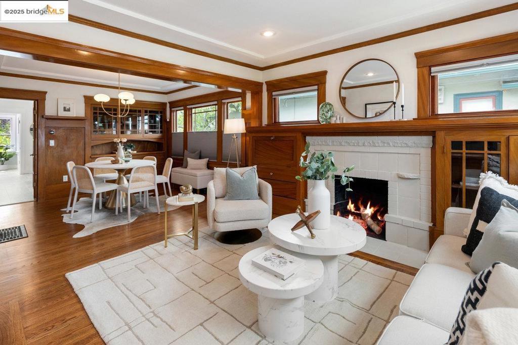 TRANSPARENT PRICE. Raised and set back from the street, this classic Craftsman pairs soulful character with fresh, practical upgrades. Warm living and dining rooms show off rich wood paneling, original built-ins, and Marvin wood-clad dual-pane windows that hush the outside world. The layout moves easily, while period details give the home a grounded, timeless feel. The kitchen offers real working room with ample counters and storage, ready for weeknight speed or relaxed weekend cooking. The refreshed, generously sized bath reads clean and current. A window-lined bonus room makes an inspiring home office, art studio, or play zone. Outside the garden is set for low-effort living: a fully paved patio for dining and lounging, raised garden beds for herbs and veggies, and two spacious, rock-solid storage sheds—ideal for bikes, tools, or a tidy workshop. Systems are dialed for confidence: earthquake retrofitting, newer attic insulation, mini-split air conditioning, tankless water heater, and a newer furnace. Location seals it. Everyday amenities, neighborhood parks, and local cafes within reach, reinforce the sense of a connected, welcoming community. With authentic charm and smart updates, 3826 Lincoln Ave delivers energized Oakland living—move-in ready and easy to love.