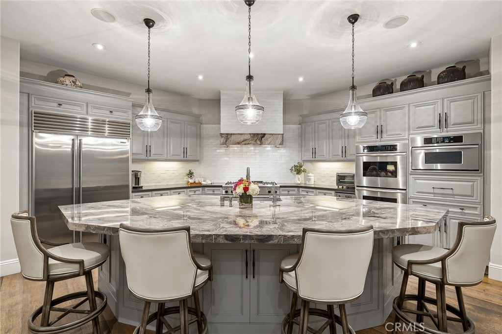 Privately positioned at the end of a quiet cul-de-sac in The Oaks of Calabasas, 3850 Prado De Las Uvas offers over half an acre of resort-style living with approximately 7030 square feet, 5 ensuite bedrooms – 1 down and 4 up, and a flexible modern floor plan seamlessly designed for ease and flow. This Mediterranean estate features warm wood floors, beam ceilings, a dramatic great room with fireplace, and a perfectly located chef’s kitchen equipped with premium stainless appliances, double ovens, oversized island, and custom cabinetry. Downstairs the well designed flow is built around access to the desired and vast multiple outdoor spaces. Perfect for large gatherings or intimate nights. The upstairs primary suite complete with separate sitting area, delivers privacy and scale with its own fireplace, covered veranda, and remodeled spa-inspired bath with soaking tub and oversized shower. Upstairs has the sizable laundry room, office/ theater space, and gym overlooking the backyard. Designed for entertaining, the oversized backyard showcases a sparkling pool, waterfall, and spa, built-in BBQ with seating, covered patio lounge with fans and heaters, full-size sport court, and mature landscaping for exceptional privacy. Residents enjoy exclusive access to The Oaks’ 24-hour guard-gated security, clubhouse, tennis and pickleball courts, fitness center, basketball court, and resort-style pool. Located just minutes from Malibu The Commons at Calabasas and within the award-winning Las Virgenes School District. Luxury, privacy, and location — all in one of Calabasas’ most sought-after communities. Welcome to Guard-Gated Luxury in The Oaks of Calabasas.