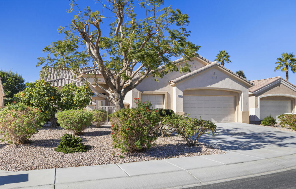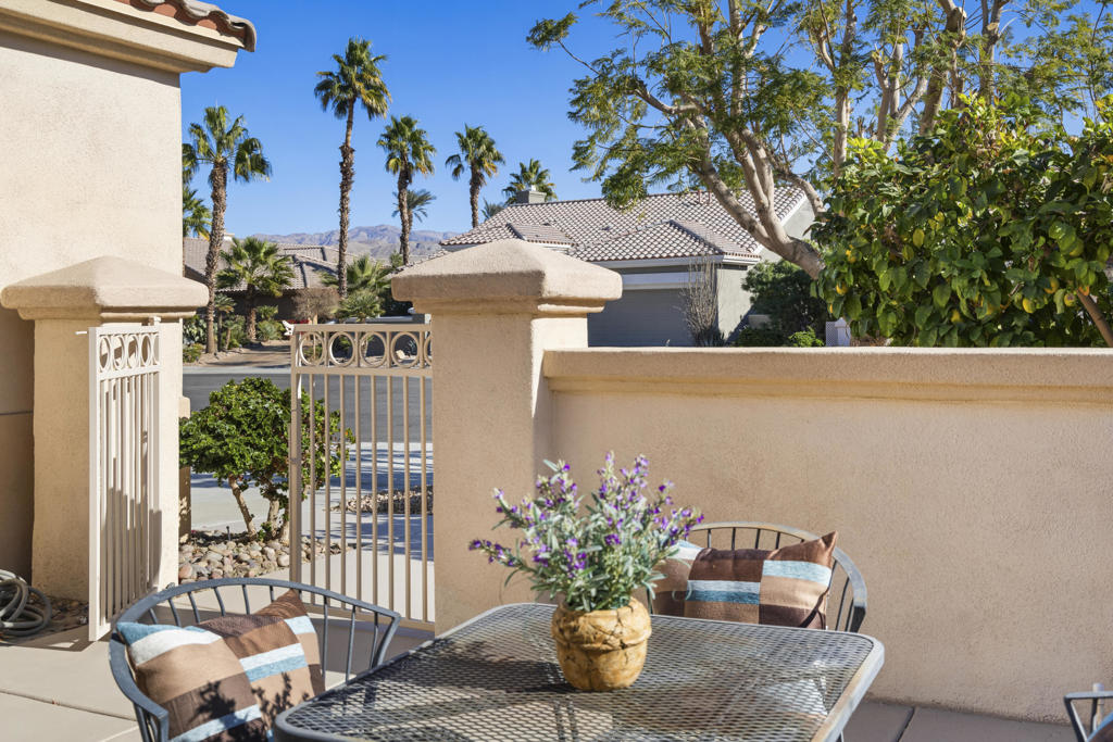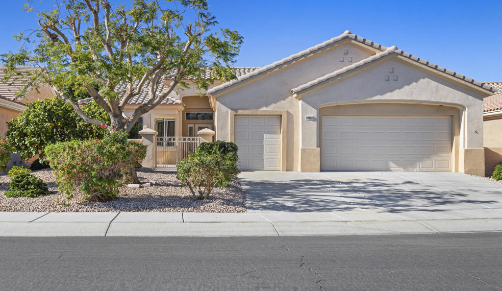 Sun City Palm Desert! The most popular great room model – The St Croix! This home has the den extended into a full bedroom with a closet. Or it can be a spacious den with sitting area for TV viewing. Neutral tile throughout, except for carpeted bedrooms, Great room leads to spacious expended covered patio, Very private area with 4 different fruit trees. Kitchen has lovely GE appliances, Stainless steel oven with convection bake, updated GE Stainless french door refrigerator with extra drawer and ice on the door, GE range, along with stainless wine refrigerator and Galanz two door air fryer. Light maple cabinetry with light gray toned corian. Master bedroom has a door leading to the patio, counter with two sinks, stall shower, and huge closet! Secondary bedroom has a nearby bath in the hallway, which has a tub/shower unit. The third bedroom (or den) is off the great room with doors for entry and a closet. There is a lovely courtyard with gate when entering the property to keep any small petssafe. Also includes a 2 car garage plus golf cart garage with several stoage cabinets available. This is a probate sale, however judge has already awarded full power to the beneficiary, so escrow can be closed very quickly, Make this pristine home your own within one of the top retirement communities in the USA according to Money Magazine! You will have a safe, securely gated community with 2 golf courses, pro shops, driving range, pitching and chipping practice are