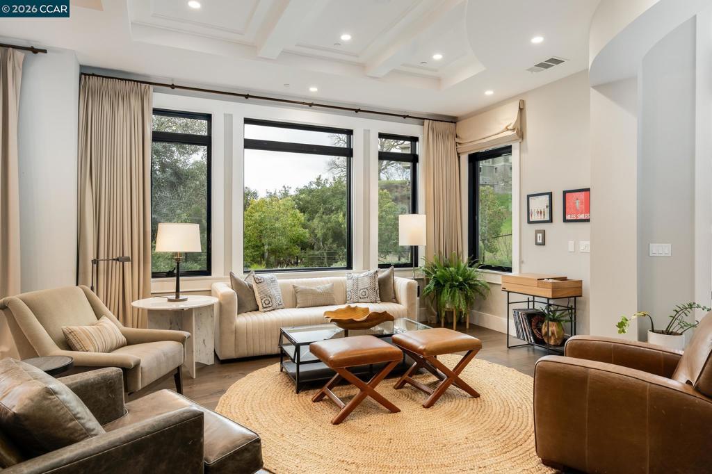 Located within the exclusive gated enclave of Legacy Ridge, just minutes from Round Hill Country Club, this contemporary new construction home offers refined design, privacy, and beautiful sweeping views. All bedrooms are en suite, complemented by an additional full bath with outdoor access and two powder rooms, including one off the upstairs loft. The chef’s kitchen is thoughtfully designed with top-tier appliances, dual dishwashers, an oversized island, walk-in pantry, and seamless flow to both casual and formal dining areas. The primary suite is a private retreat featuring a fireplace, spa-inspired bath, and expansive custom walk-in closet. Outdoors, the Peter Koenig–designed backyard is ideal for entertaining with an outdoor kitchen, fire pit, putting green, and manicured lawn. Andersen windows, motorized shades, box-beam ceilings, custom built-ins, and a Sonos surround system complete this exceptional residence. Take advantage of Round Hill Country Club living, close to parks, trails to Mt. Diablo, freeway access and within the San Ramon Valley School District.