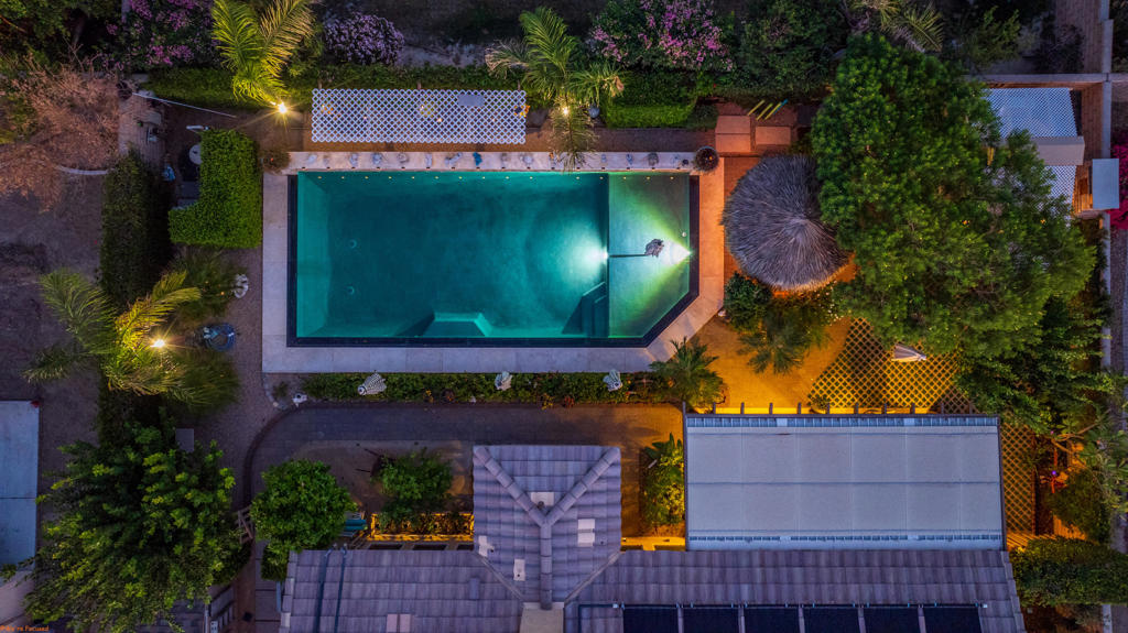 Beautiful and truly one of a kind home located in Indio offering 5 bedrooms and 4 bathrooms with two spacious living areas, perfect for comfortable living and entertaining. The property also offers RV parking and showcases extensive upgrades throughout with exceptional indoor and outdoor features.Inside the home you will find large porcelain flooring, custom finishes, smart switches in the front of the home, a built in sound system in the main living areas and primary bedroom, and a custom entertainment wall that creates a stunning focal point in the living room. The upgraded kitchen features granite countertops, a trash compactor, wine mini fridge, and a unique built in aquarium that can be enjoyed from the dining area and main living space.The primary suite offers a luxurious retreat with heated floors in both the bedroom and bathroom, porcelain tile shower walls, a freestanding soaking tub, and quartz countertops.The backyard is designed for true resort style living and entertaining. Enjoy the infinity edge pool with a chlorine free filtration system, solar heating, massage jets, waterfall feature, and travertine perimeter. The outdoor area also includes a full outdoor bathroom with shower, perfect for guests and pool use. Entertain family and friends with the fully equipped bar and grill area featuring a charcoal BBQ, gas grill, pizza oven, and mini fridge. A beautiful palapa with misting system and lighting provides a comfortable shaded space for outdoor gatherings.Additional features include travertine patios, cantera stone pathways, artificial turf, wood deck areas, garden beds with automatic watering system, and several fruit trees including lemon, orange, tangerine, and tangelo. The property also offers RV access with a paved driveway and electric gate.The garage features porcelain flooring, built in shelving for storage and organization, and a swamp cooler.This unique property combines luxury upgrades, resort style outdoor living, and functional space for a variety of lifestyles. A rare opportunity to own a truly special home in Indio. See attached upgrade list.