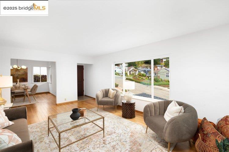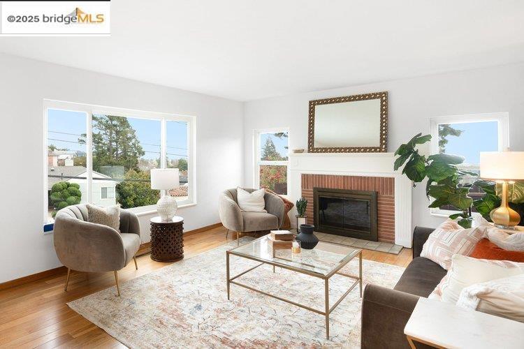 Come enjoy this timeless Mid-Century Modern home in the coveted Lincoln Heights neighborhood, lovingly owned by the same family for 70 years. Perched in the Oakland Hills, 4121 Maple Avenue offers stunning expansive views of the Bay and City Skyline. Period details shine bright in the elegant living and dining rooms featuring a cozy fireplace, large windows that flood the space with natural light, a recently refinished hardwood floors. The spacious eat-in kitchen features a large island, providing the perfect setting for cooking and entertaining. The home offers 4 generously sized bedrooms and a detached rumpus room with it’s own fireplace. It’s an ideal spot for a guest suite, home office, or secondary living area. A bright atrium seamlessly connects the main house to the rumpus room, enhancing the home’s unique character and charm. Outdoor enthusiasts will adore the expansive patio areas, fruit trees, storage outbuilding, and the beautifully landscaped terraced yard with endless possibilities for entertainment and relaxation. Spacious garage & extra storage. Closes to HWY 13 & 580 and just minutes from parks, shopping, and restaurants this is a prime location! This is indoor-outdoor living at its finest—a timeless treasure ready for its next chapter. Don’t Miss This Gem! Views: Downtown