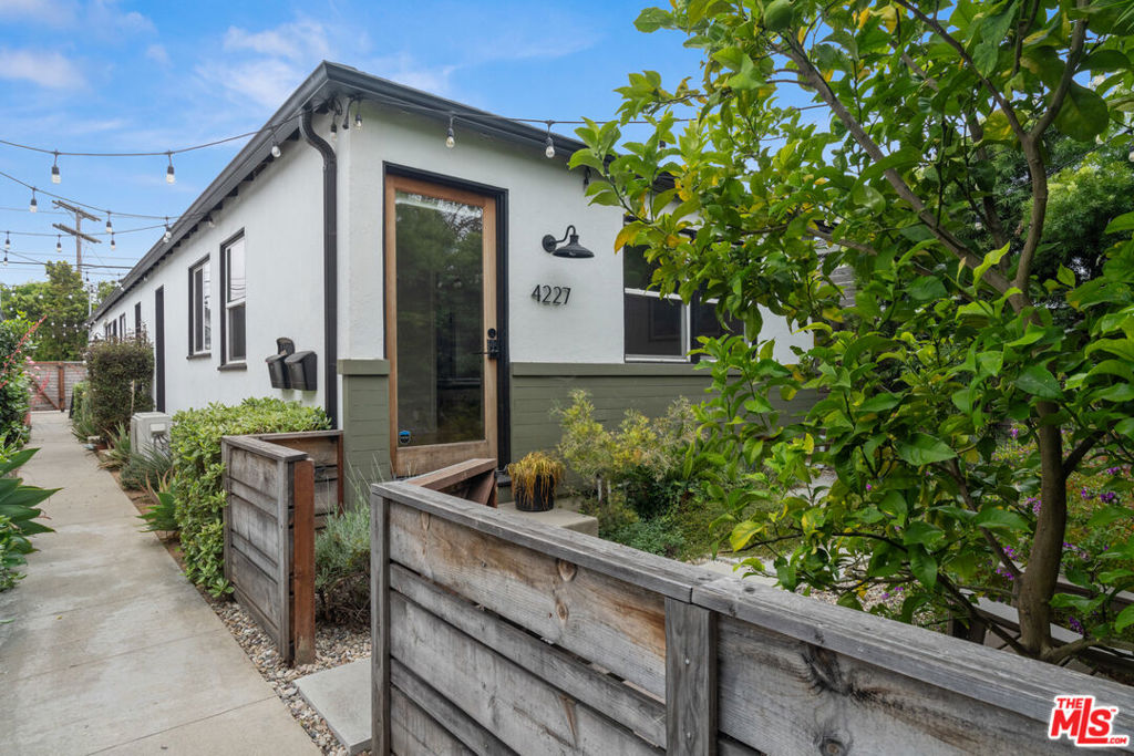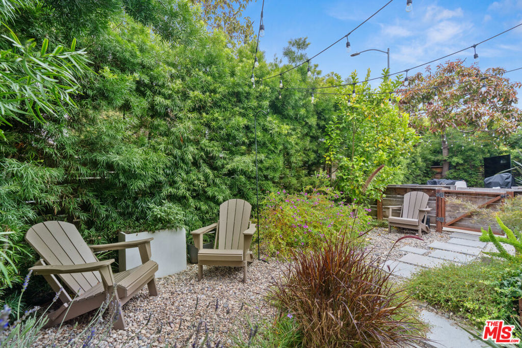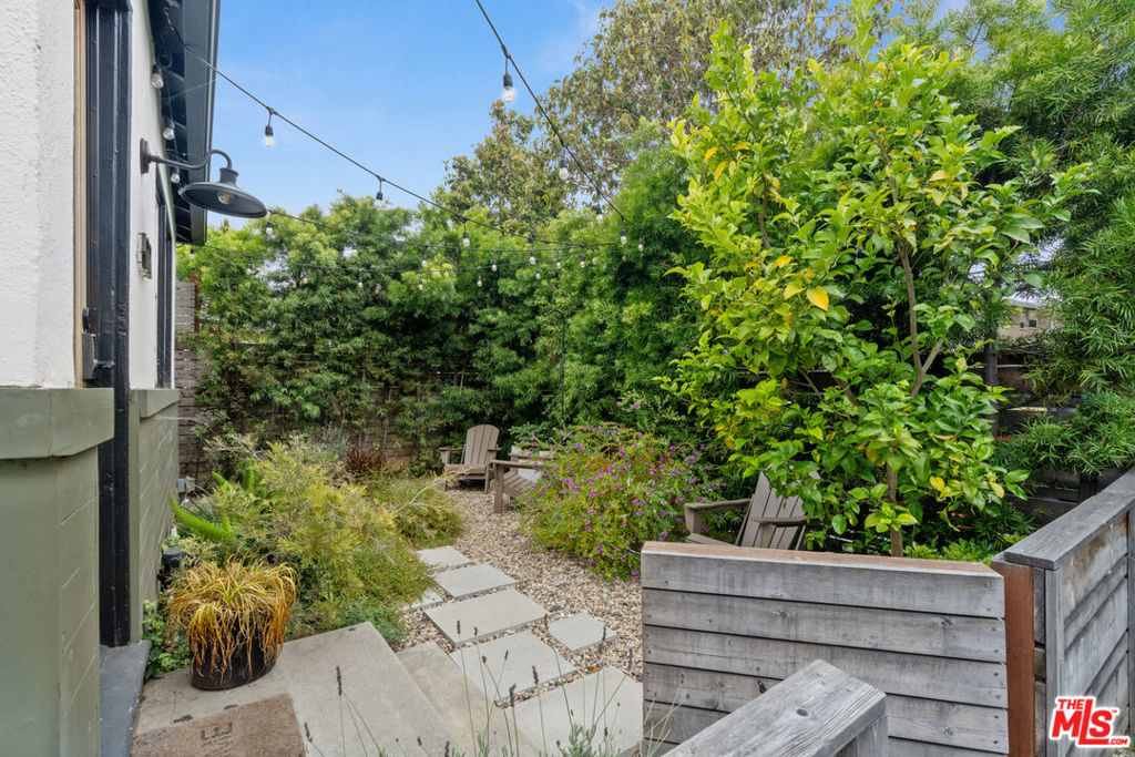 This charming, intimate oasis in Mar Vista is hidden behind a wooden fence and dense podocarpus hedge, just seconds from Hatchet Hall, Ginger’s Ice Cream, Lodge Bread, and more, and near Culver City, Venice, Playa Vista, and Santa Monica. Featuring lush vegetation, an outdoor seating area, and a mature Eureka Lemon tree, the newly landscaped yard is perfect for grilling and social gatherings. This stone path leads to a home with one bedroom and one bathroom. A large living room window opens to the backyard for indoor-outdoor living at night, while the south-facing windows let natural light flood the adorable living room and kitchen during the day. As part of a tight-knit community of four homes, this renovated 50s gem boasts original wood flooring complemented by modern touches, including white shaker cabinets, floating wood shelving, butcher block countertops, an oversized sink, recessed lighting, air conditioning, and dishwasher. Subway and hexagonal tiles decorate the remodeled bathroom, while a large closet and storage area are located in the bedroom. There is a versatile, single-car garage with custom cabinetry, a desk space, additional storage, and a washer and dryer in the unit.